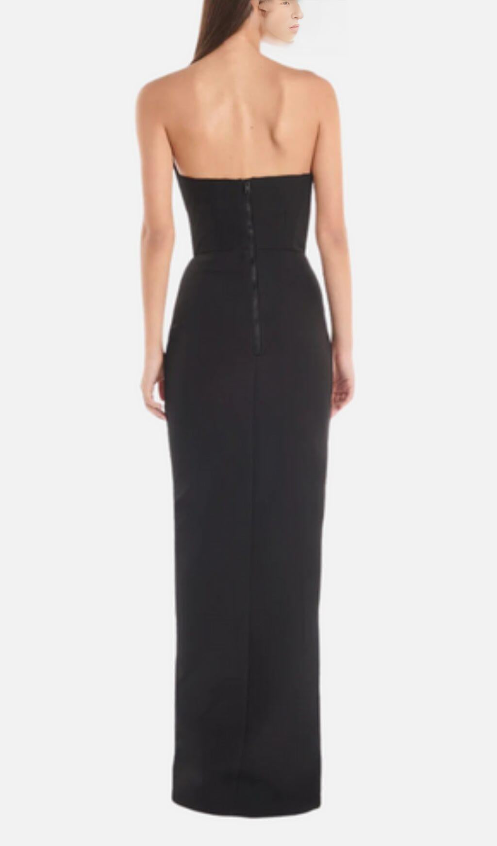 Dare to make a dramatic entrance with our luxurious BLACK SPLIT THIGH GOWN. Crafted from superior satin fabric that flatters the silhouette, this glamorous gown displays exquisite styling with its highest slit, capped shoulders, and enchanting sequins. Enjoy a night of exclusivity in our luxurious creation.