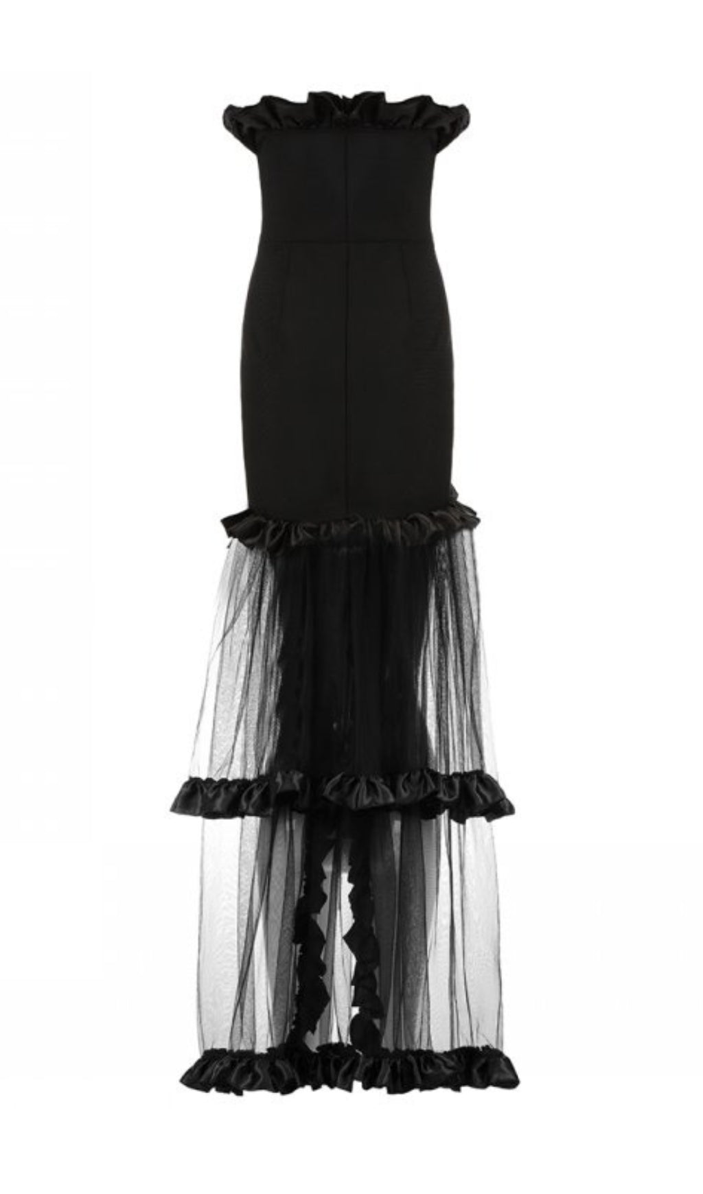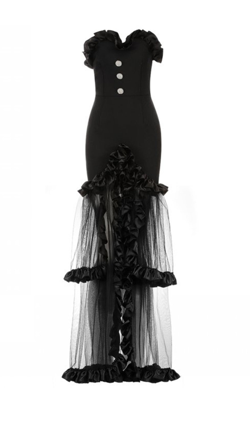 BLACK STRAPLESS TAIL MAXI DRESS