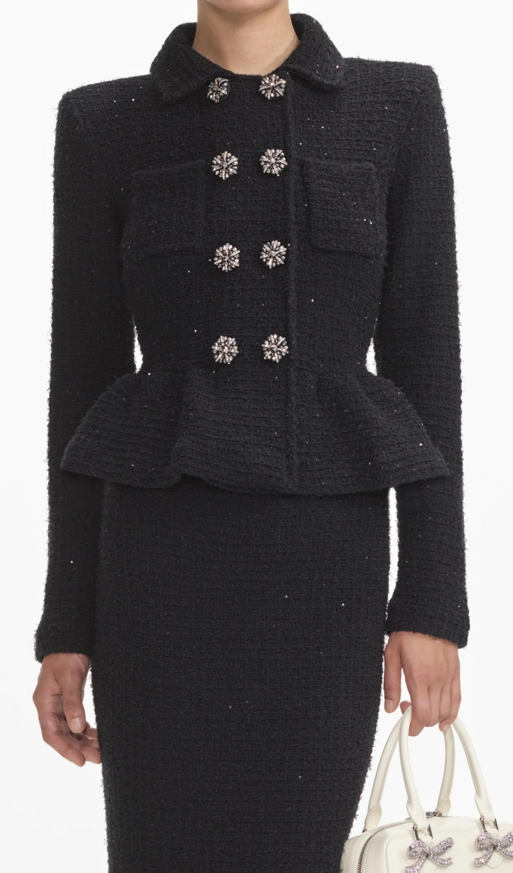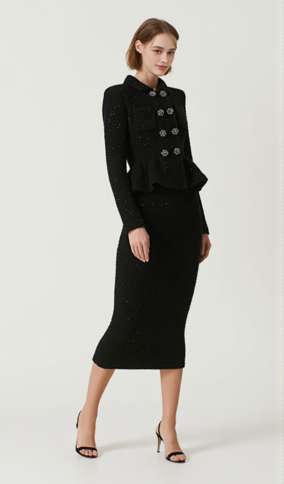 BLACK TEXTURED KNIT PEPLUM MIDI DRESS