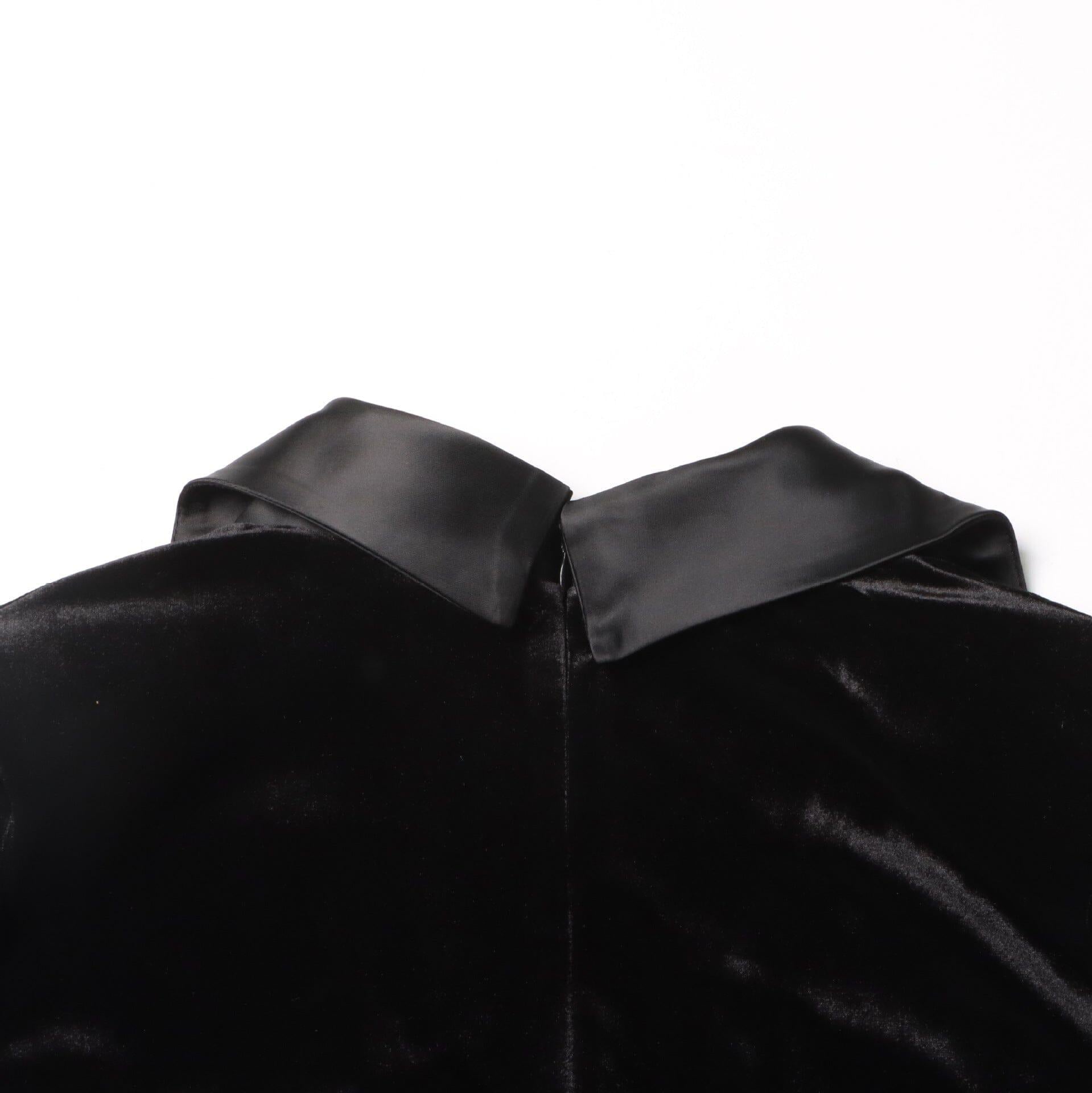 Get ready to turn heads in this dress. With its elegant black velvet fabric and sleek tuxedo detailing, you'll feel like a star. Perfect for any special occasion, this dress will have you looking and feeling your best. Time to slay, darling.