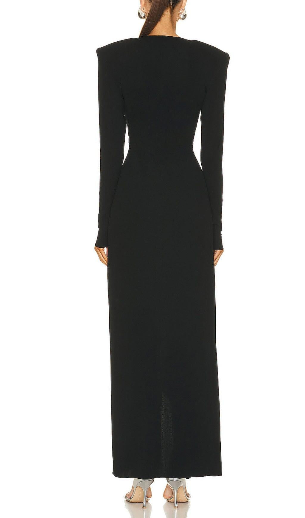 BLACK V NECK SPLIT THIGH MAXI DRESS