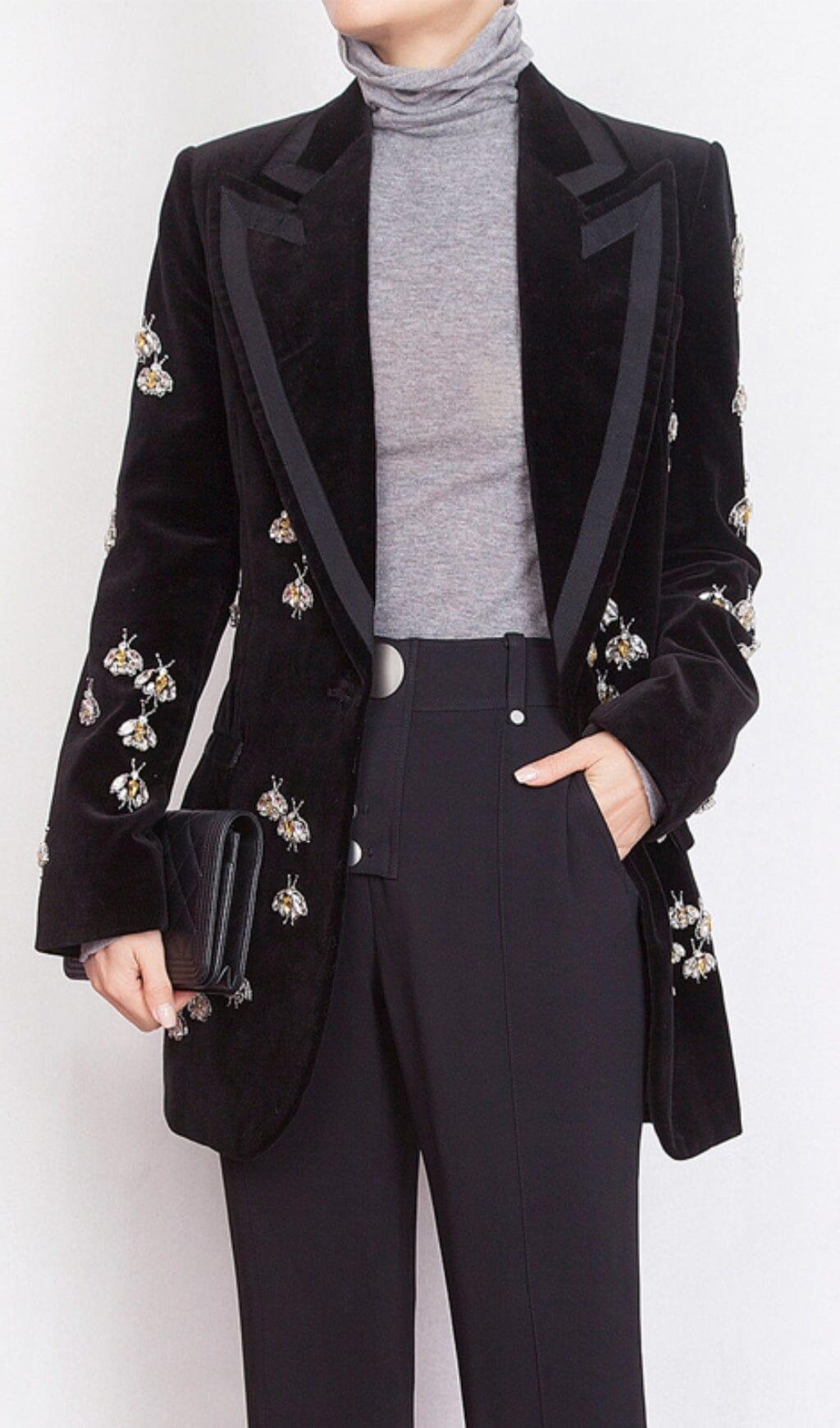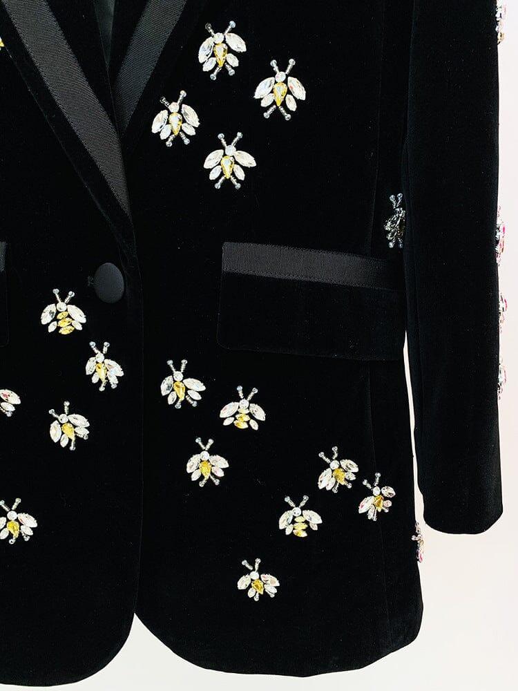 BLACK VELVET BLAZER JACKET WITH RHINESTONE BEES