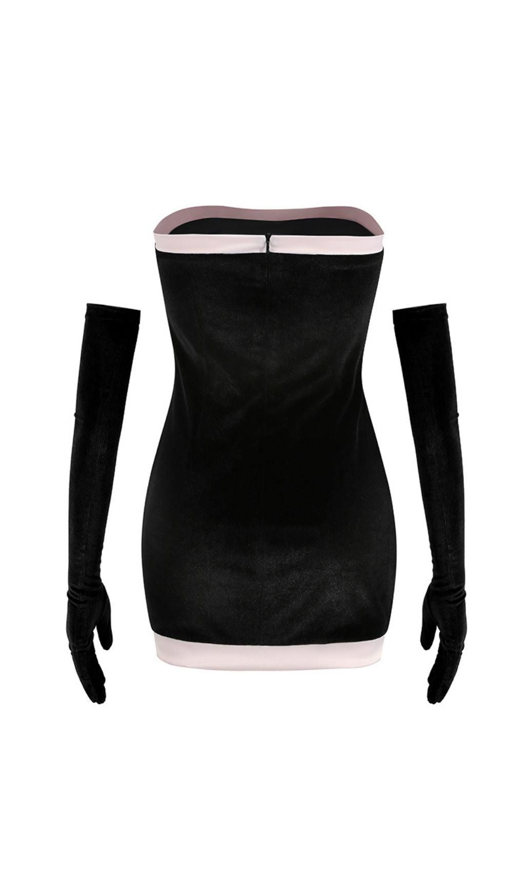 This dress is made from luxurious black velvet fabric that feels soft and smooth against the skin. It adds a touch of elegance and sophistication to your look.