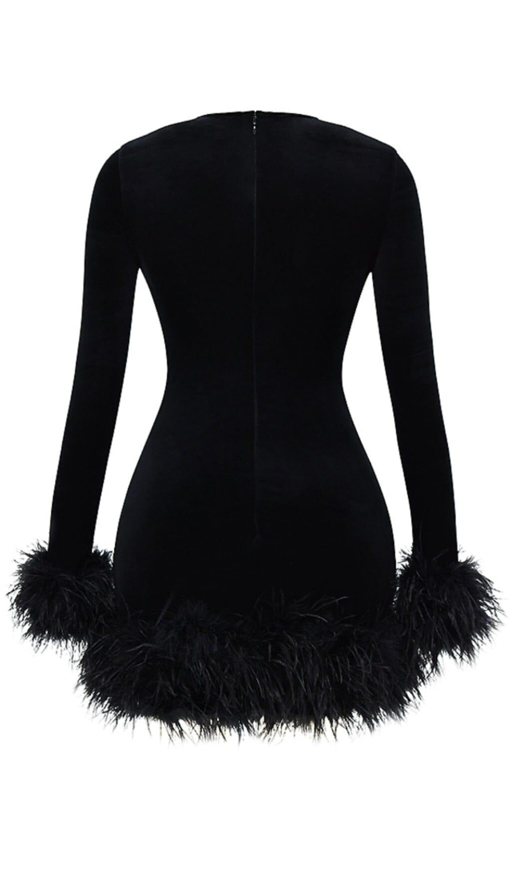 • Materials: Heavy Stretch Velvet, Feather Trims, Stretch Satin
