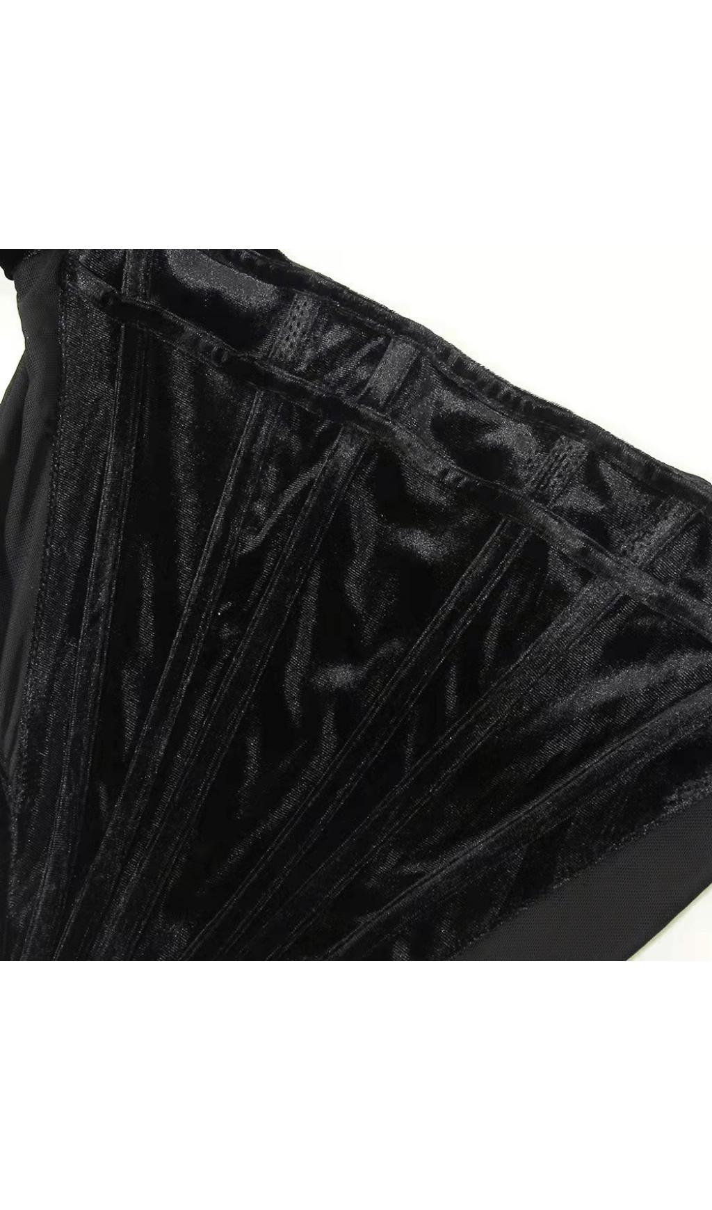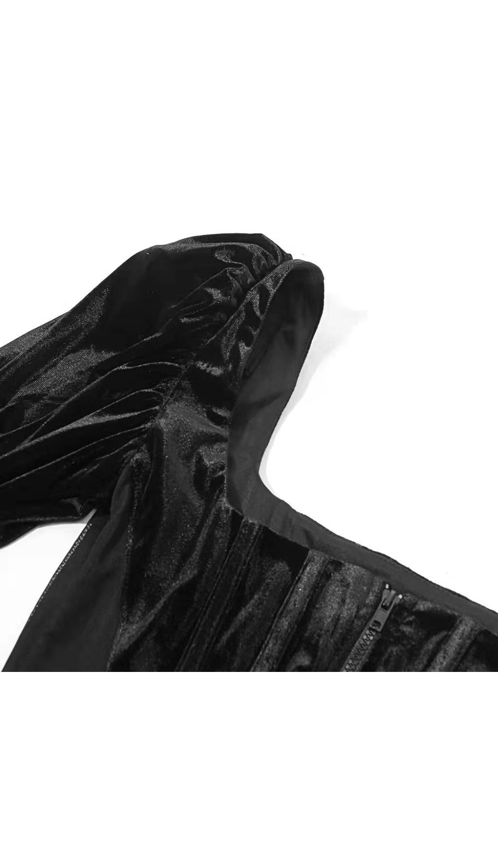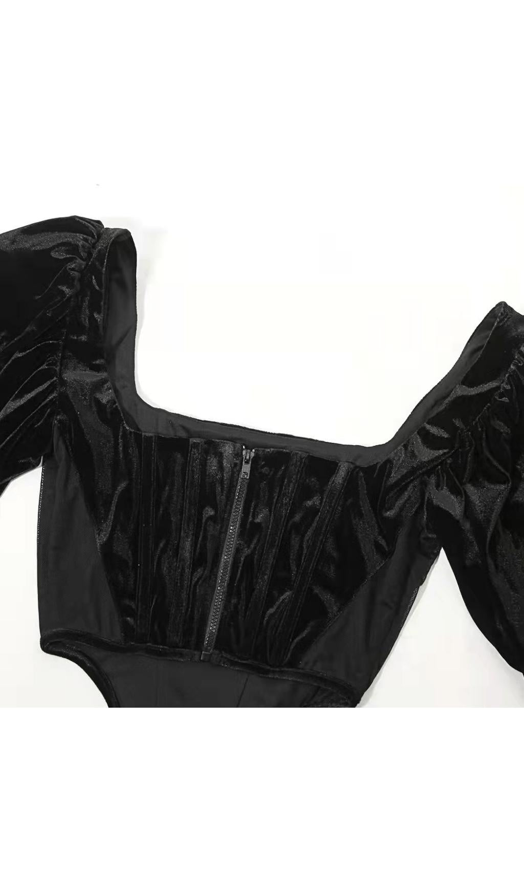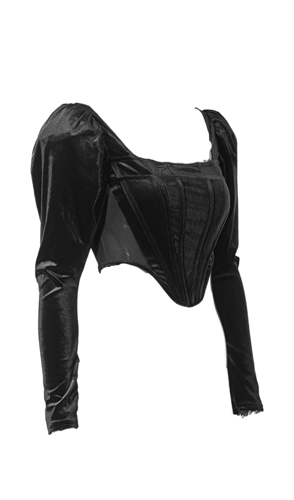 VELVET PUFF SLEEVE CORSET IN BLACK