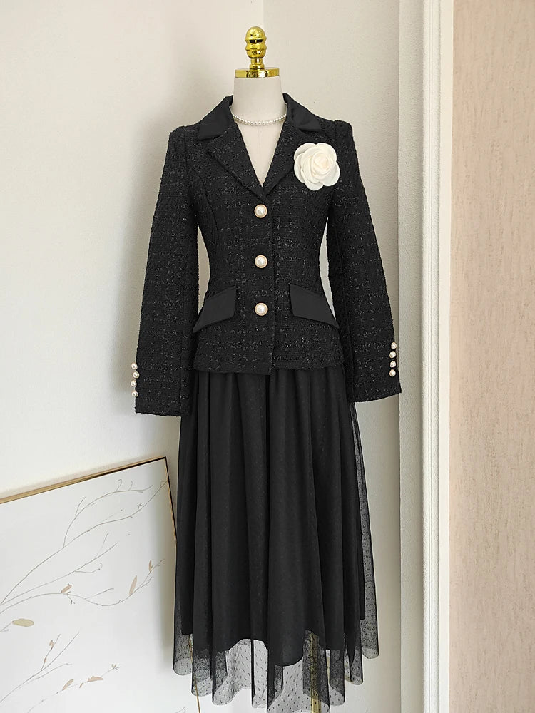 ADRIANNE BLAZER MESH SKIRT SUIT