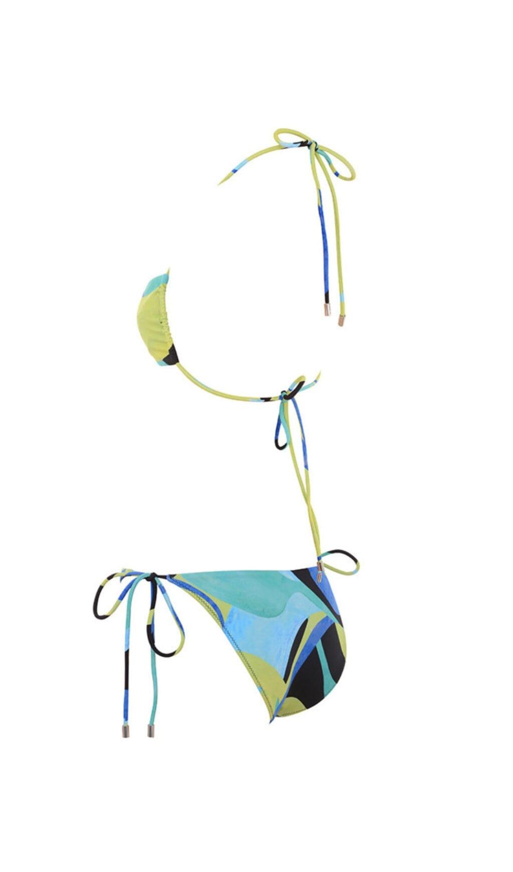 Elevate your swimwear collection with the BLUE GREEN HALTER BIKINI. Embrace your inner beach goddess and make a statement wherever you go. Order yours today and get ready to turn heads this summer!