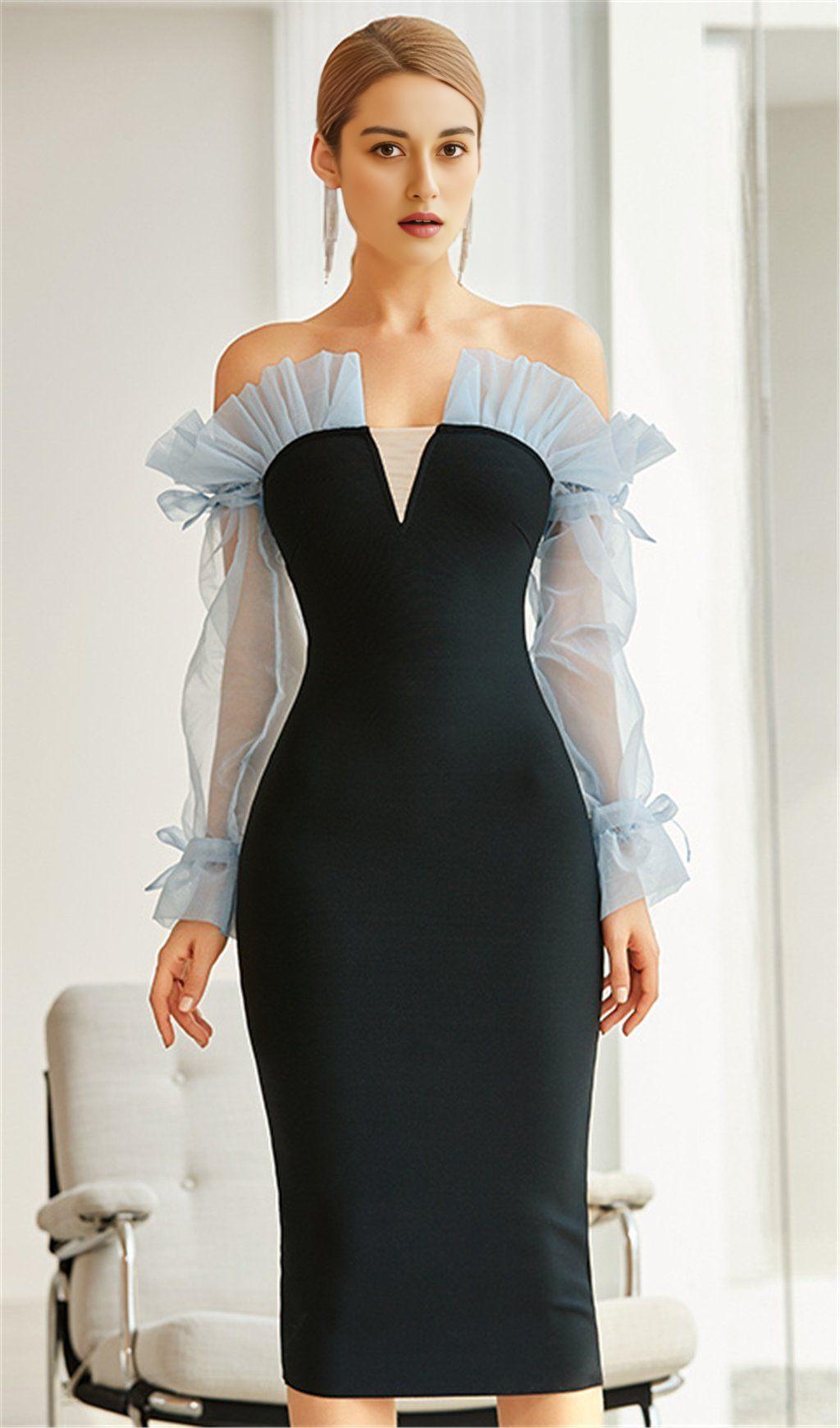 The Blue Mesh Panelled Bandage Dress is a stunning and figure-flattering dress that will make you stand out at any event. Made from our amazing bandage fabric, this dress hugs your curves and accentuates your body shape.