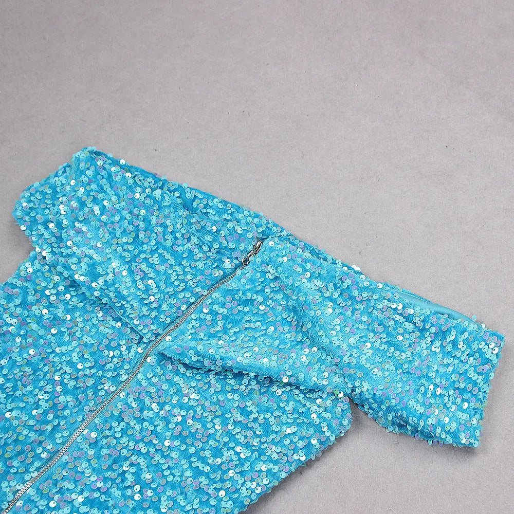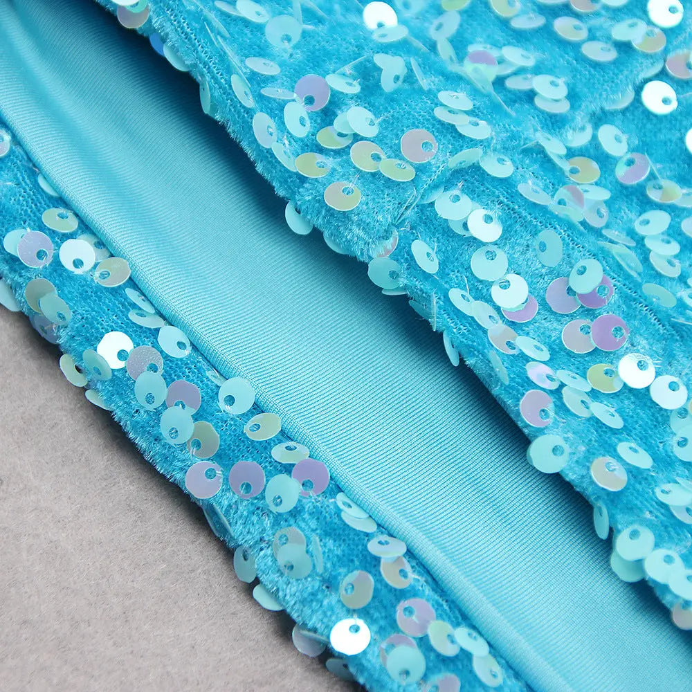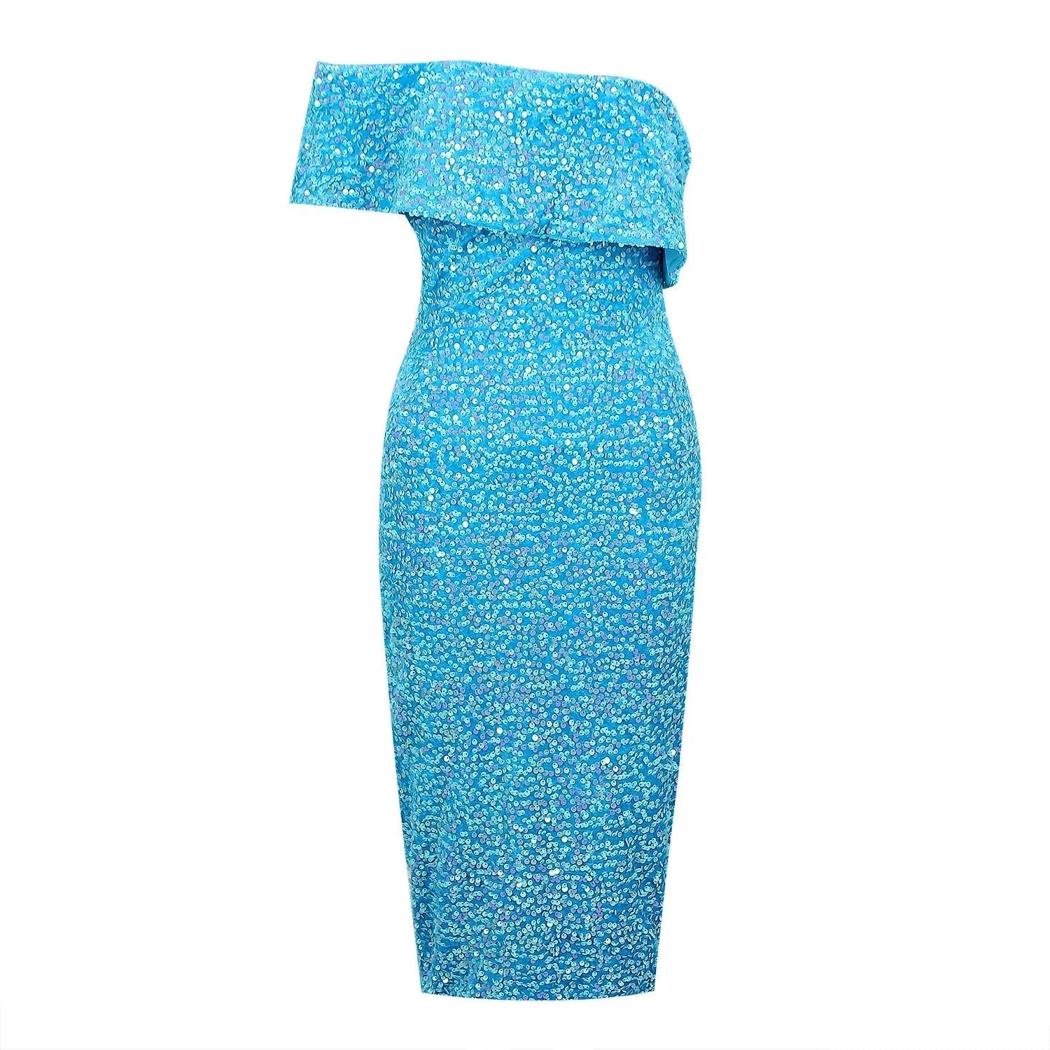 BLUE ONE SHOULDER BACKLESS SEQUIN MIDI DRESS