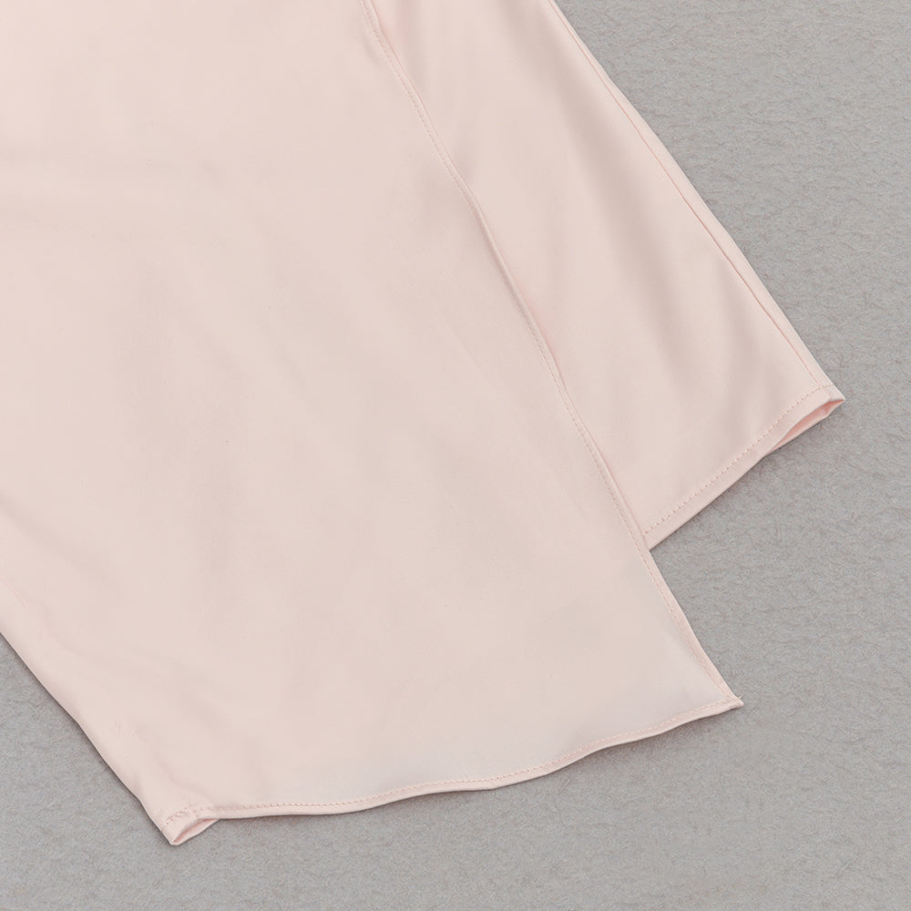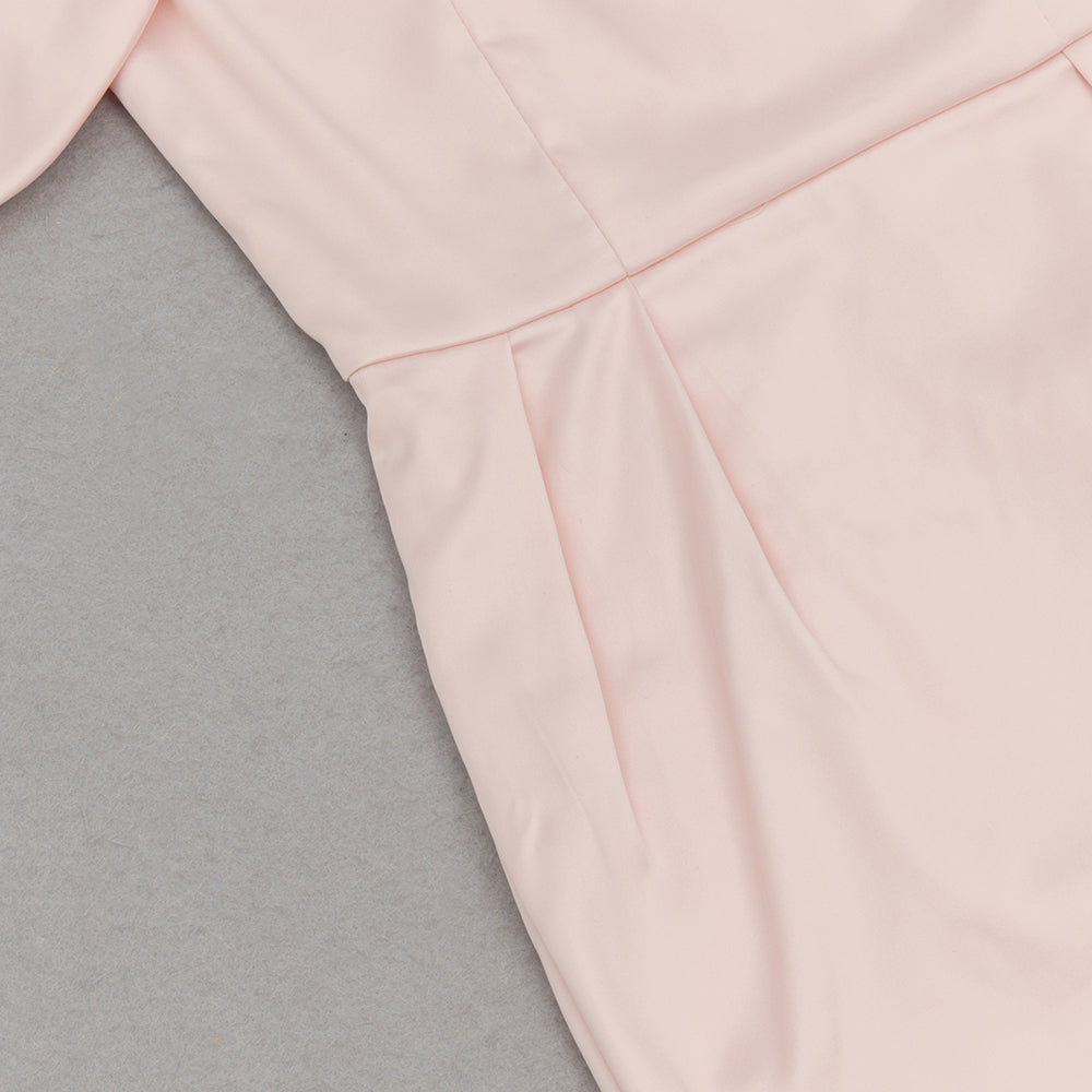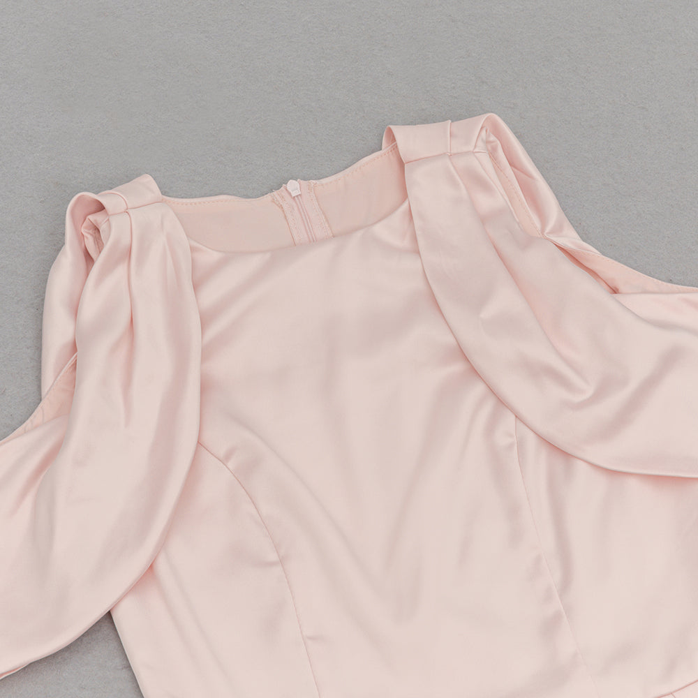 BODYCON SATIN RUCH MIDI DRESS IN PALE PINK