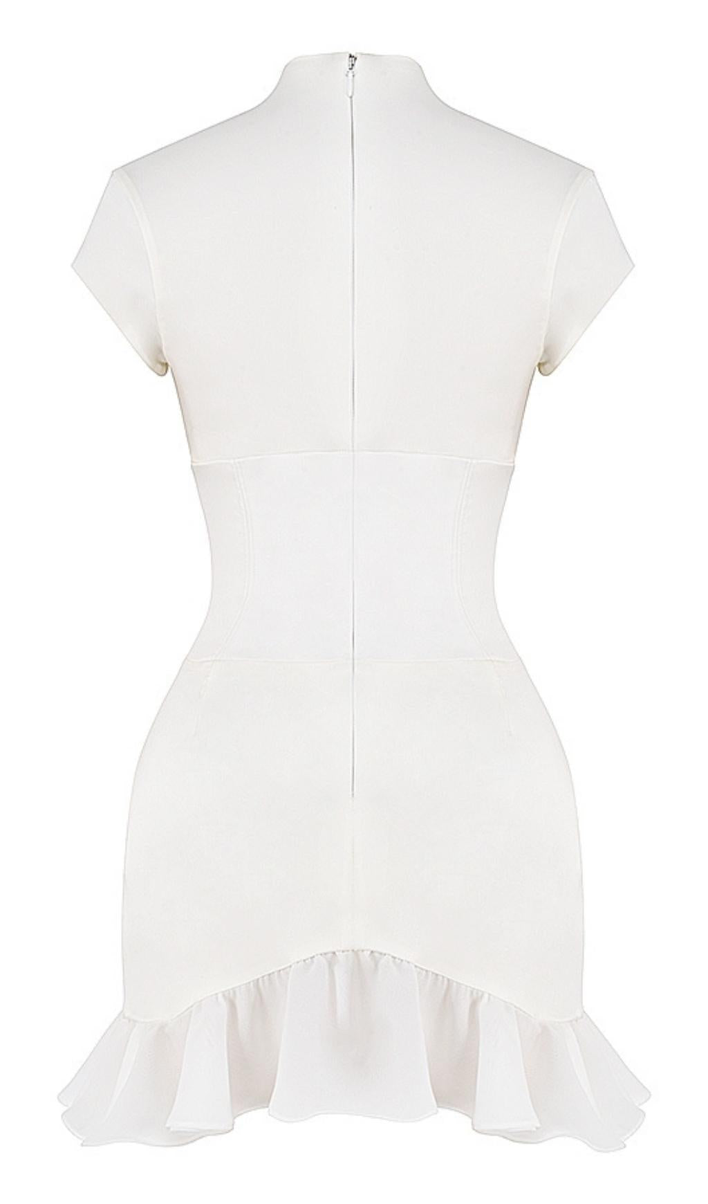 BODYCON V NECK MINI DRESS IN WHITE