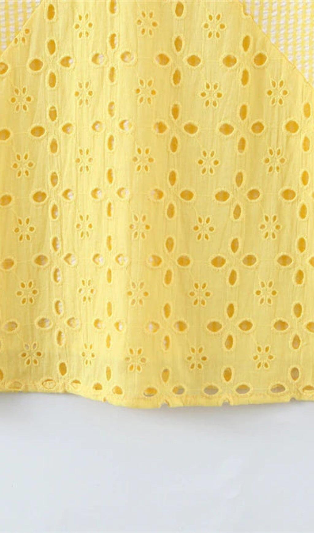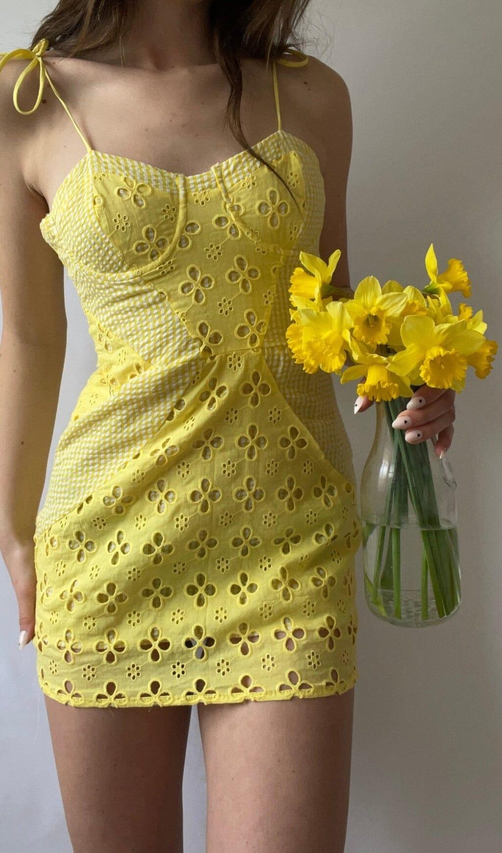 BOHEMIAN STRAPPY MINI DRESS IN LEMON
