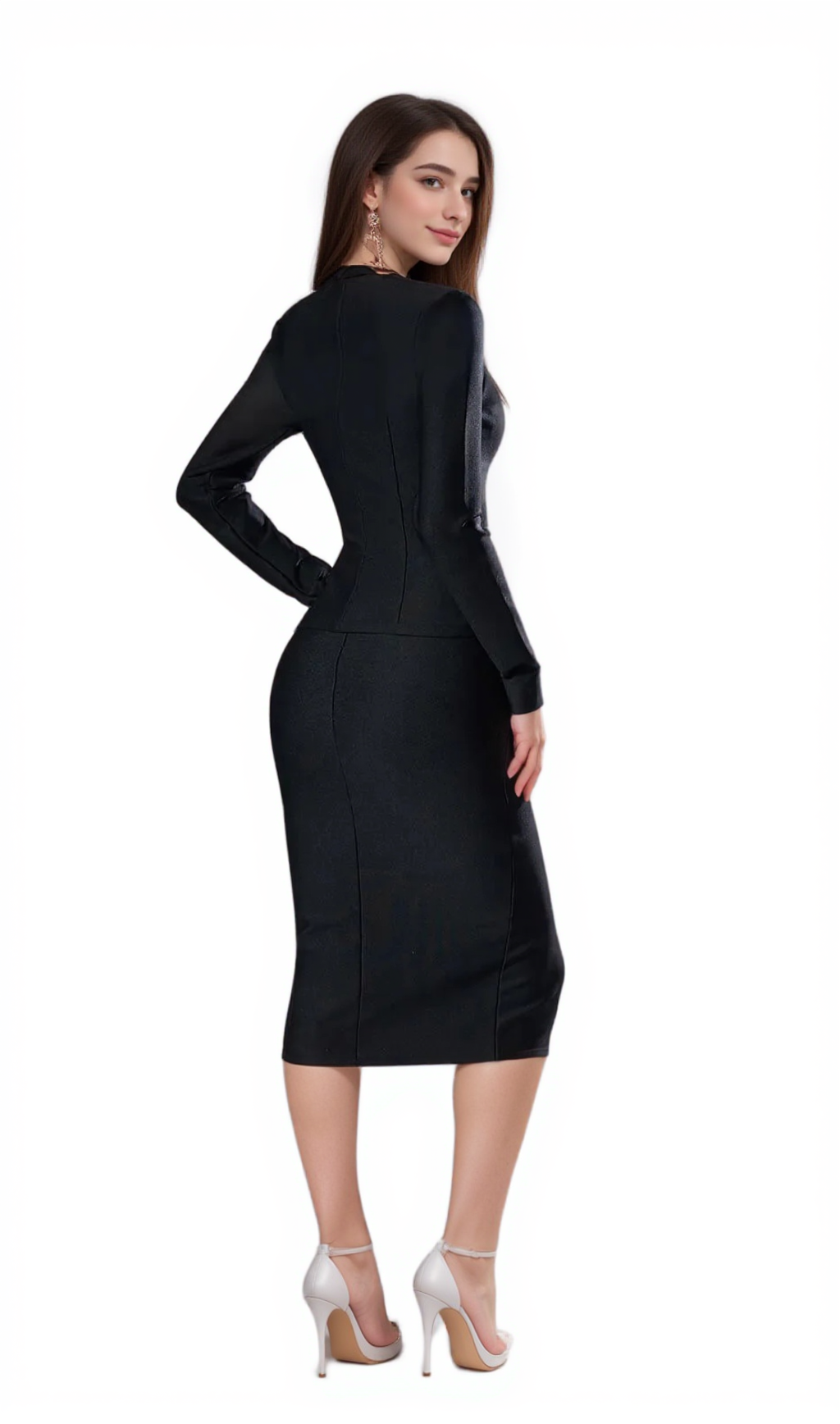bonnie Long Sleeve Single Breasted Bandage Set in black