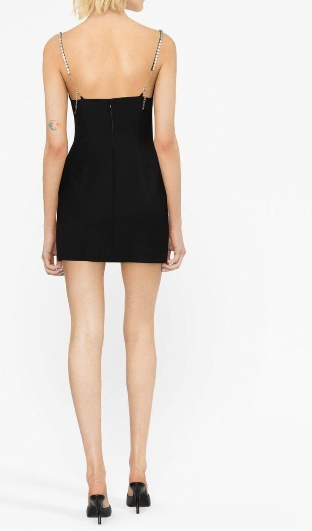 The Bow-Detail Sleeveless Mini Dress is a stunning piece from our SS23 collection that showcases our brand's penchant for stand-out embellishments. With its bow detailing and sparkling crystal straps, this dress exudes an opulent and glamorous look.