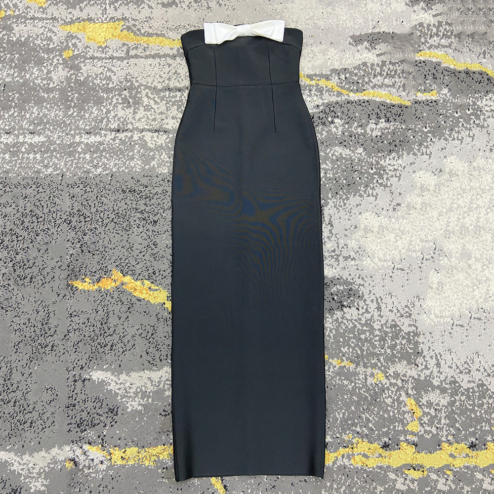 The elegant bow adds a touch of sophistication and the midi length creates a flattering silhouette. Perfect for any occasion, this dress will make you feel confident and stylish.