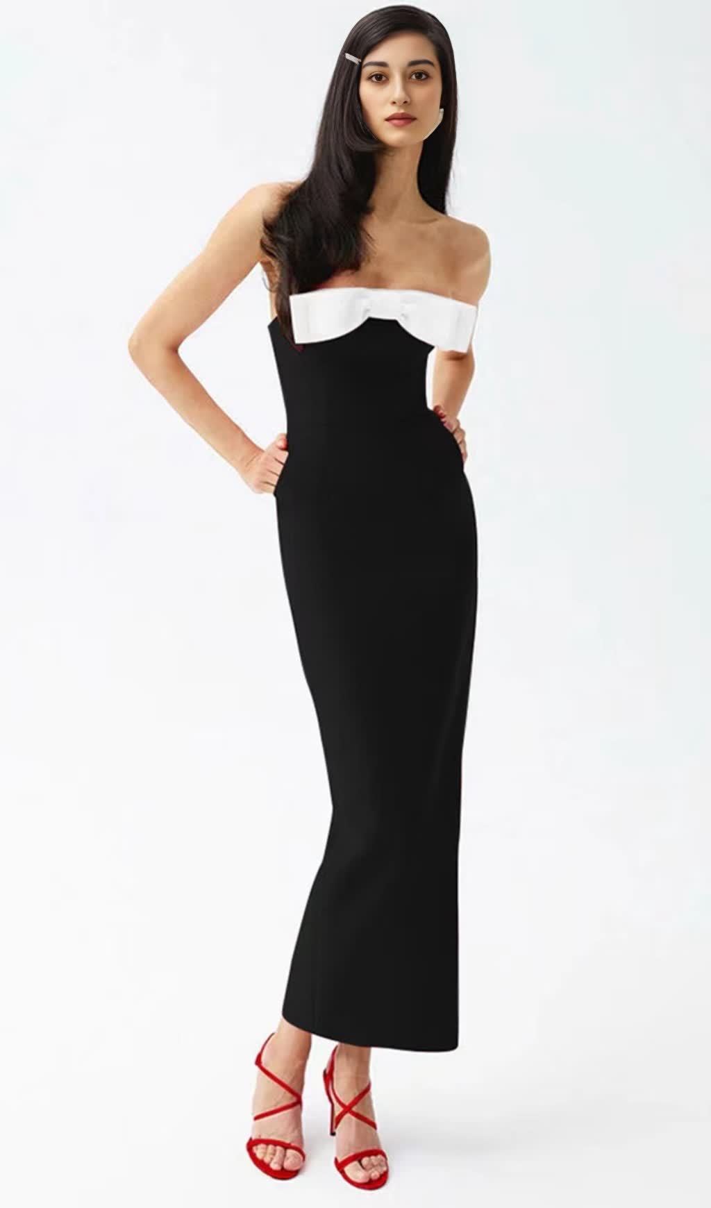 BOW-EMBELLISHED MIDI DRESS IN BLACK