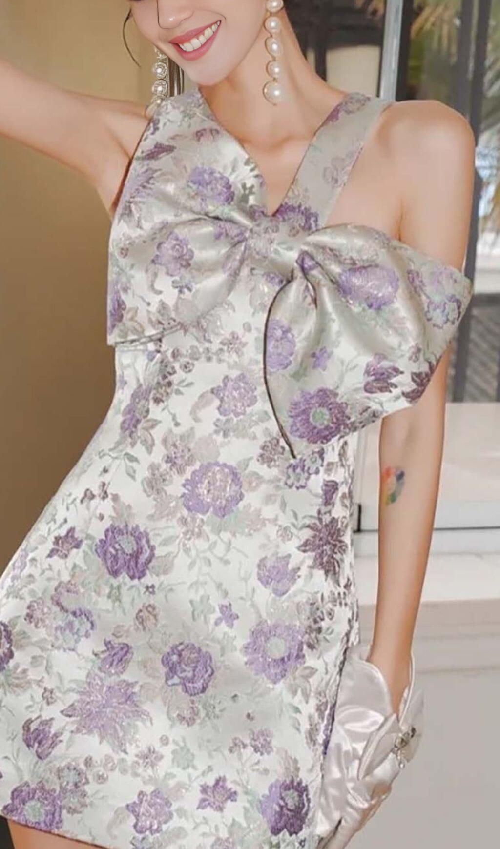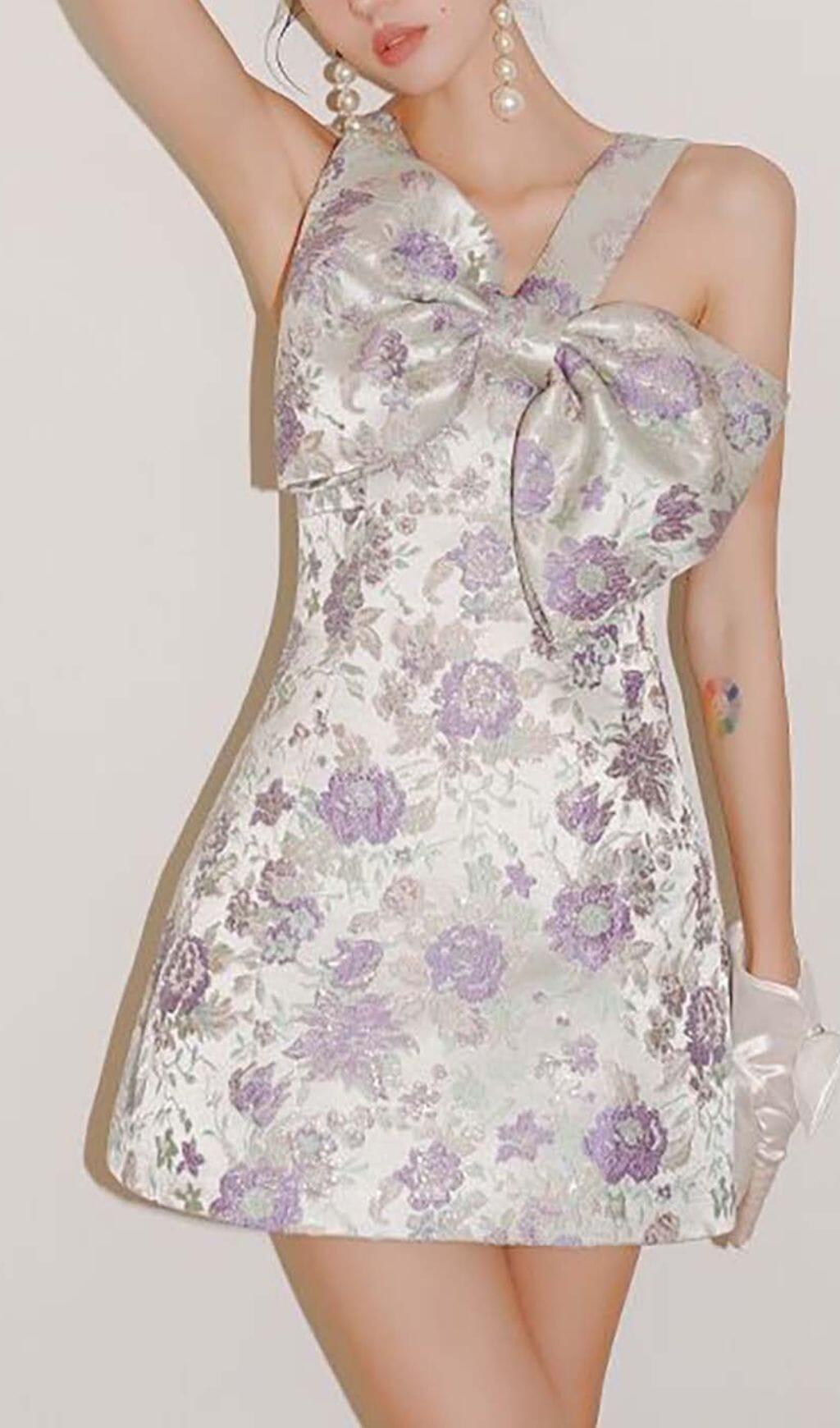 BOW-EMBELLISHED SUSPENDERS MINI DRESS