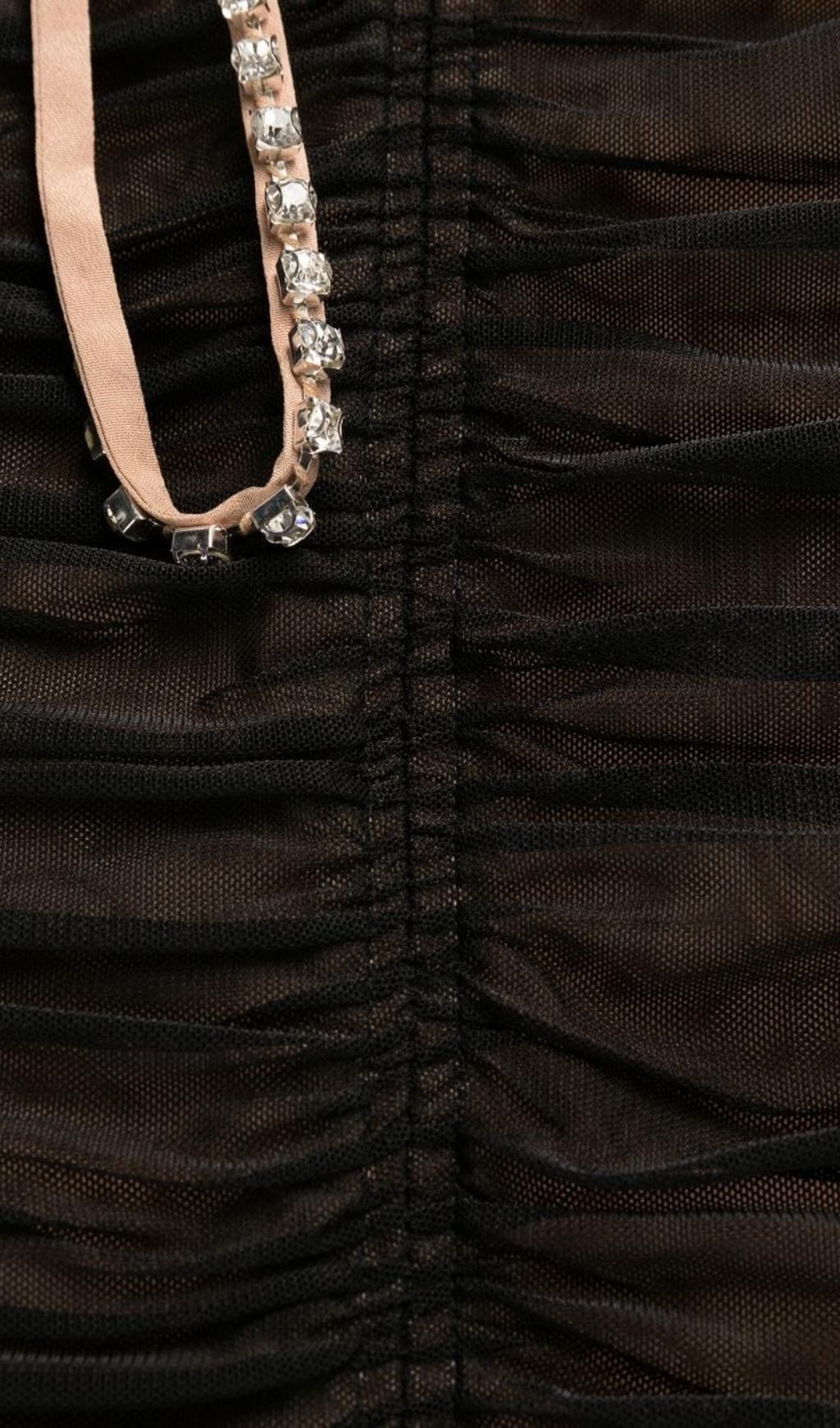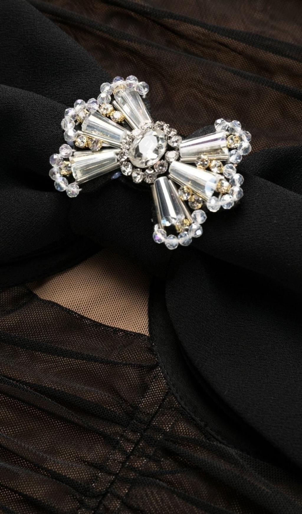 BOW MESH STRAPPY MIDI DRESS IN BLACK