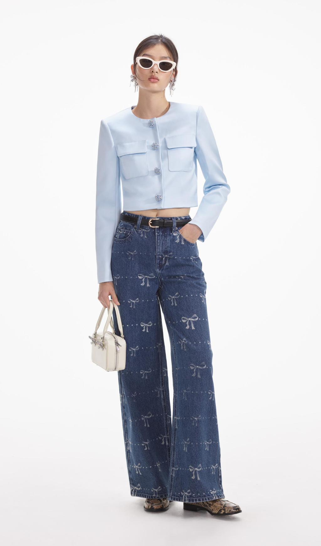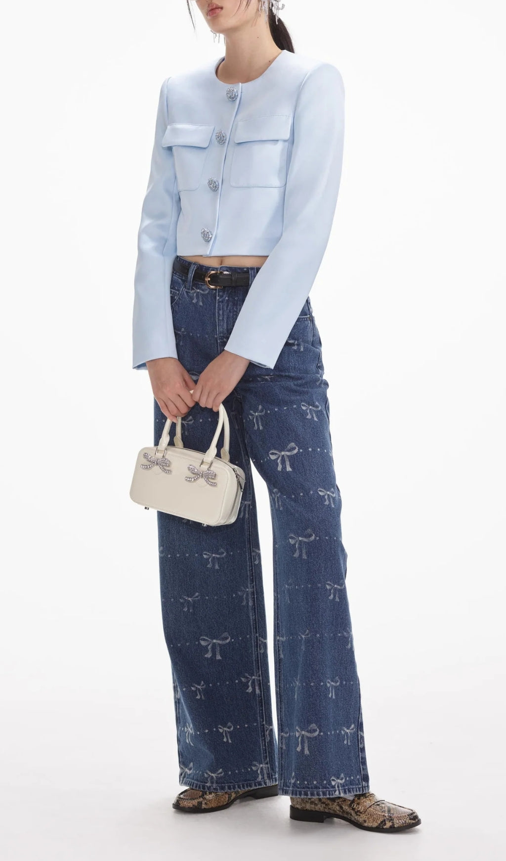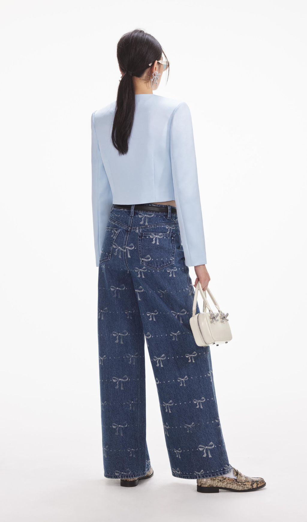 Our house signature takes a new form in these jeans, which are printed with bows and have a flattering wide-legged fit. Pair with a crop top for date night or style with a t-shirt for brunch.