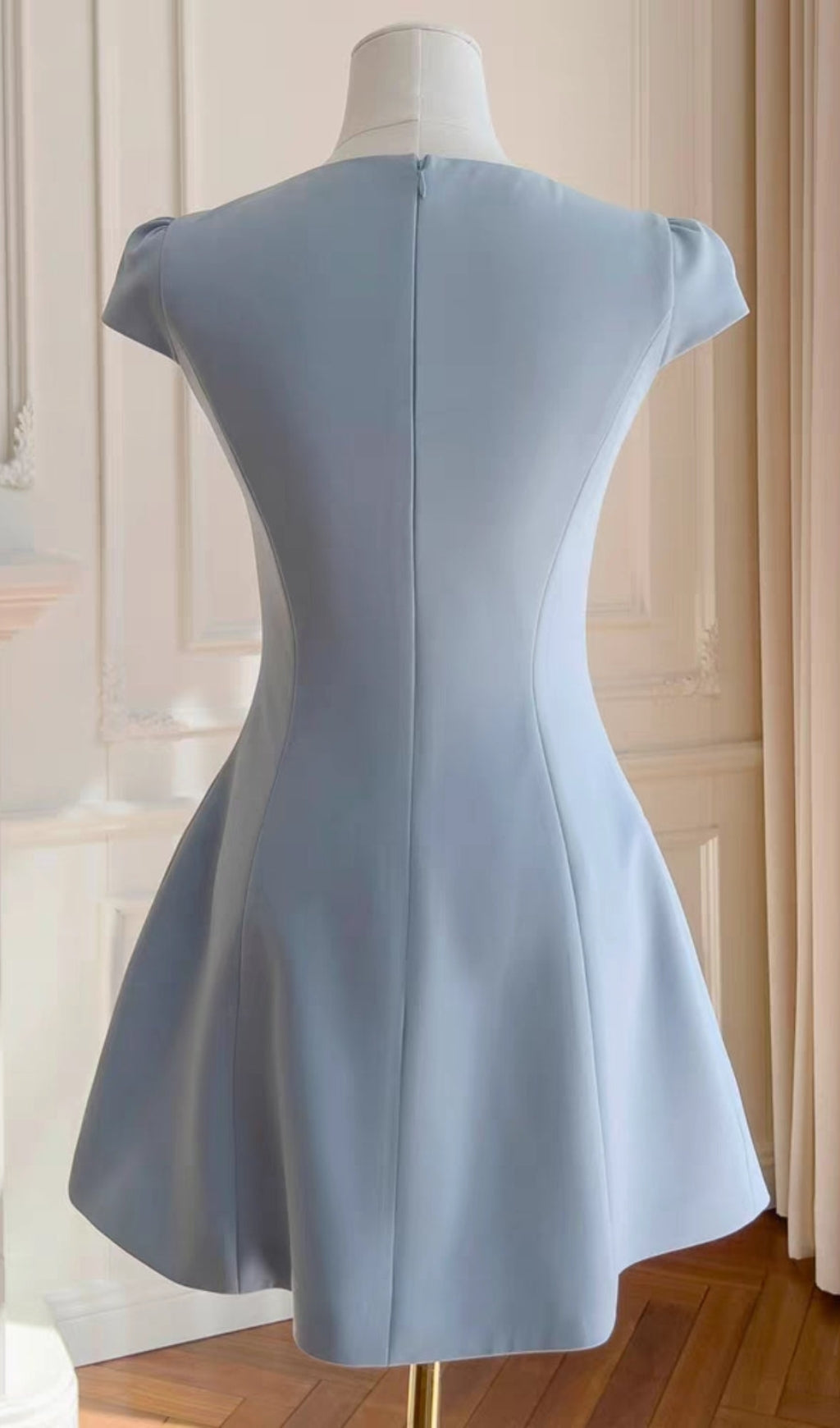 BOW SHORT SLEEVE MINI DRESS IN BLUE