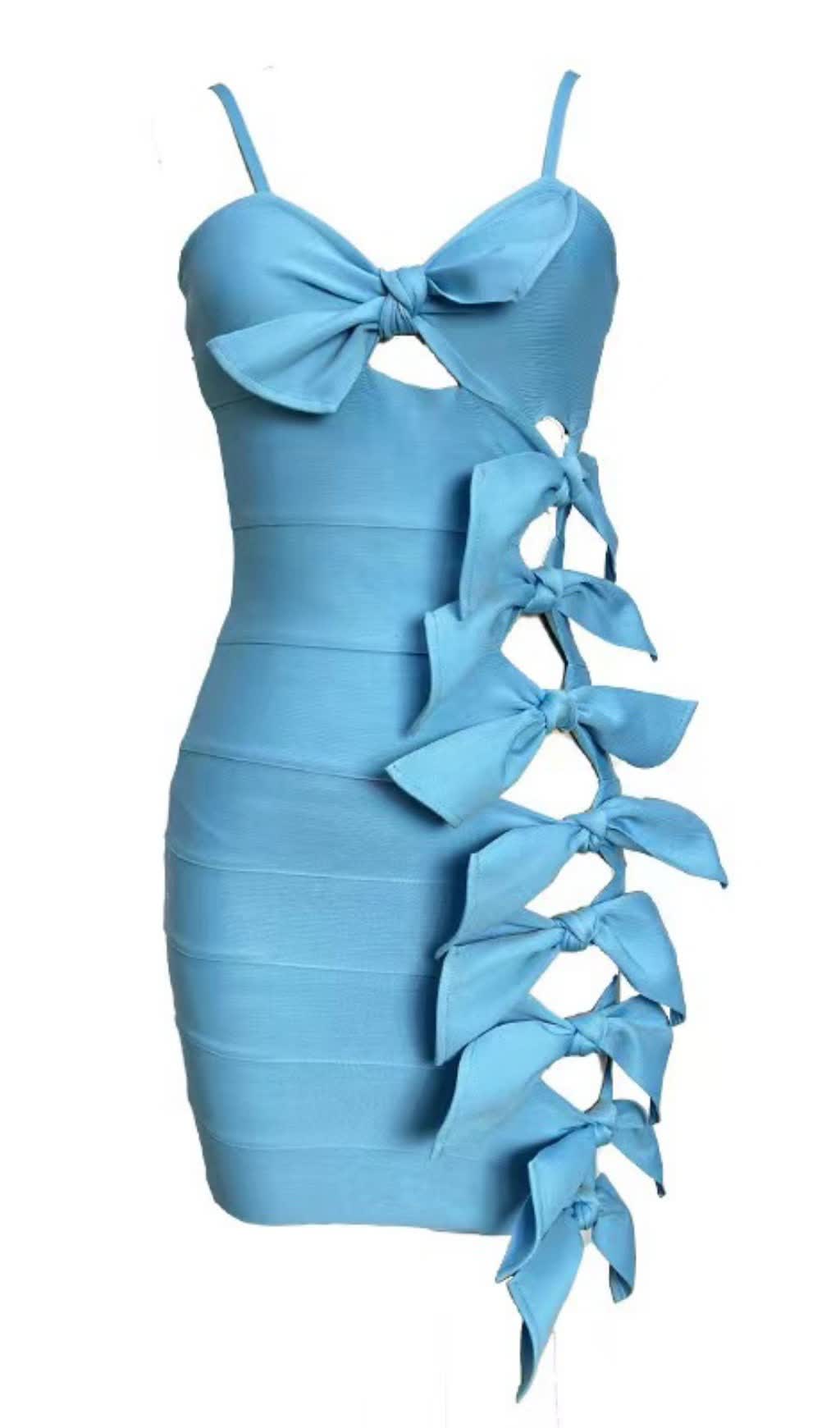 BOWKNOTS HALTER BANDAGE MINI DRESS IN BLUE