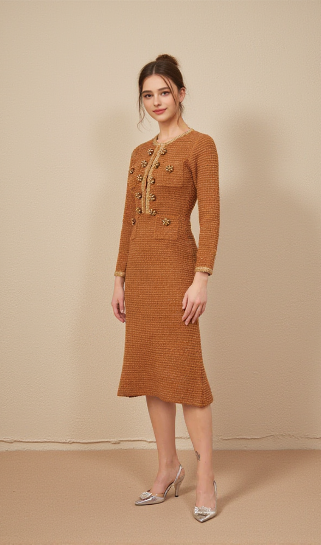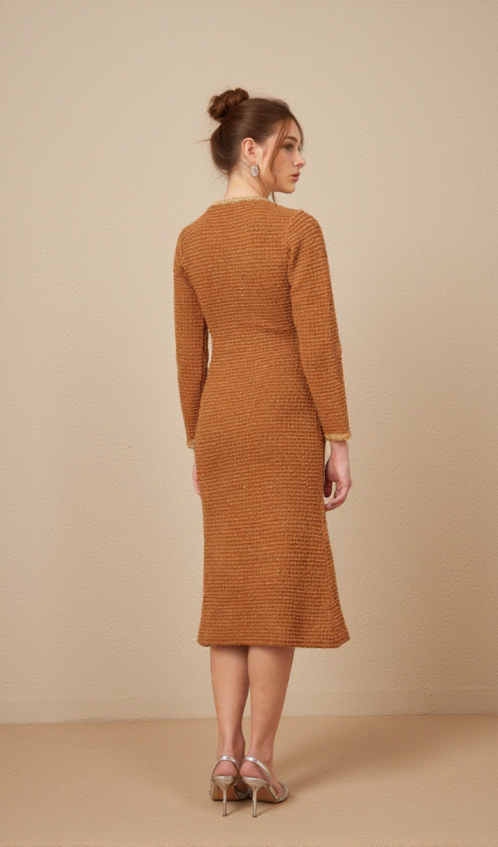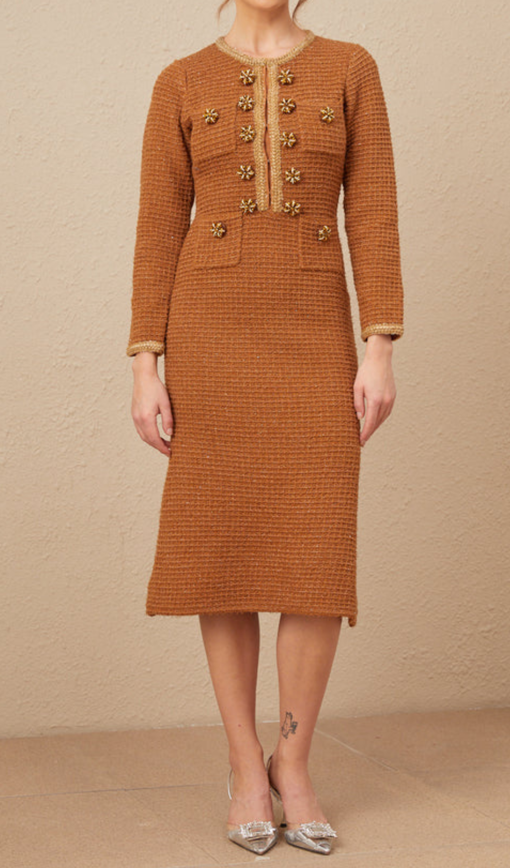 This black velvet midi dress is adorned with stunning sequin embroidery, making it the perfect choice for any special occasion or event. The luxurious fabric and intricate detailing will make you feel glamorous and elegant. Make a statement and turn heads with this one-of-a-kind dress!