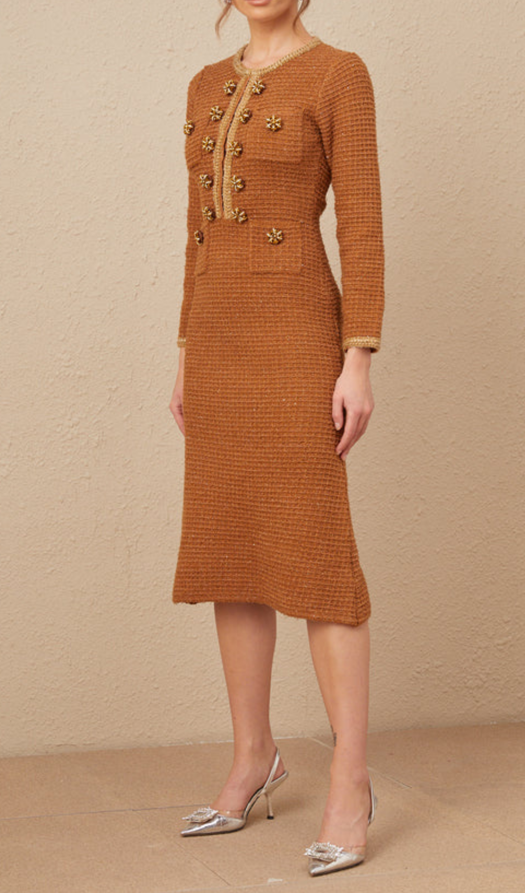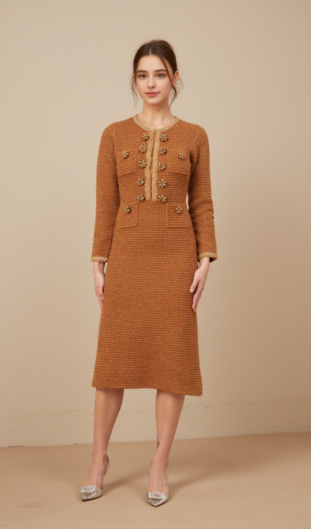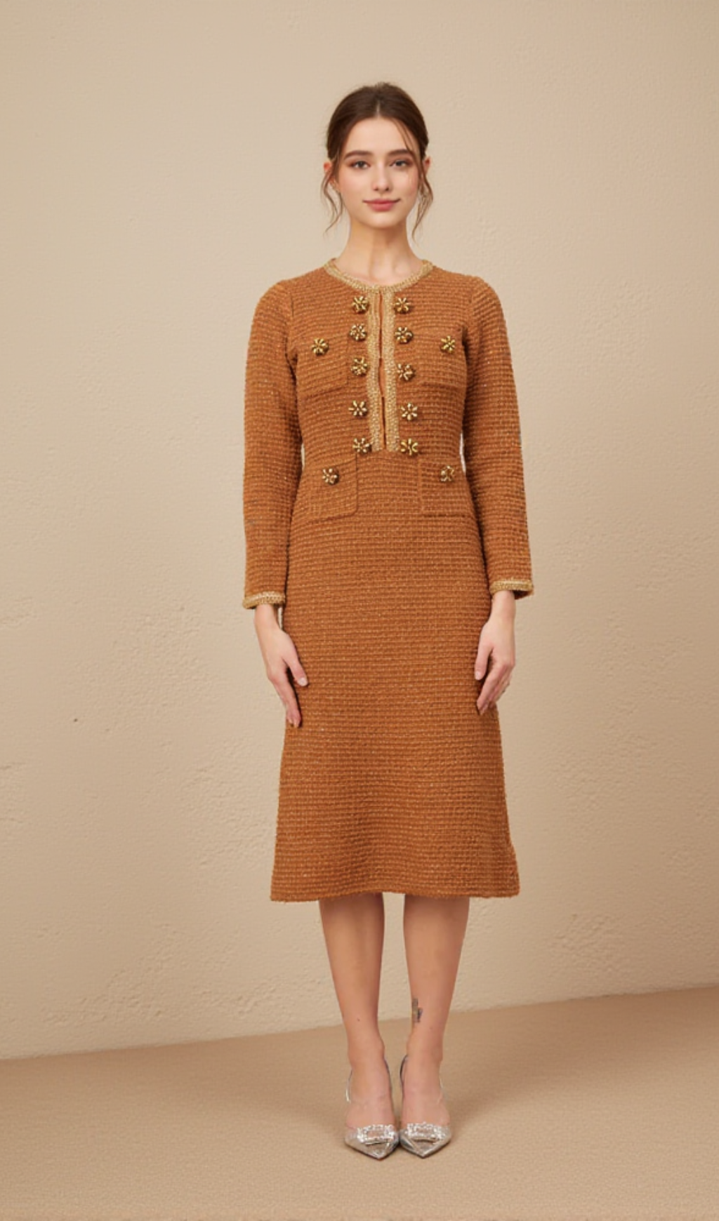 This black velvet midi dress is adorned with stunning sequin embroidery, making it the perfect choice for any special occasion or event. The luxurious fabric and intricate detailing will make you feel glamorous and elegant. Make a statement and turn heads with this one-of-a-kind dress!