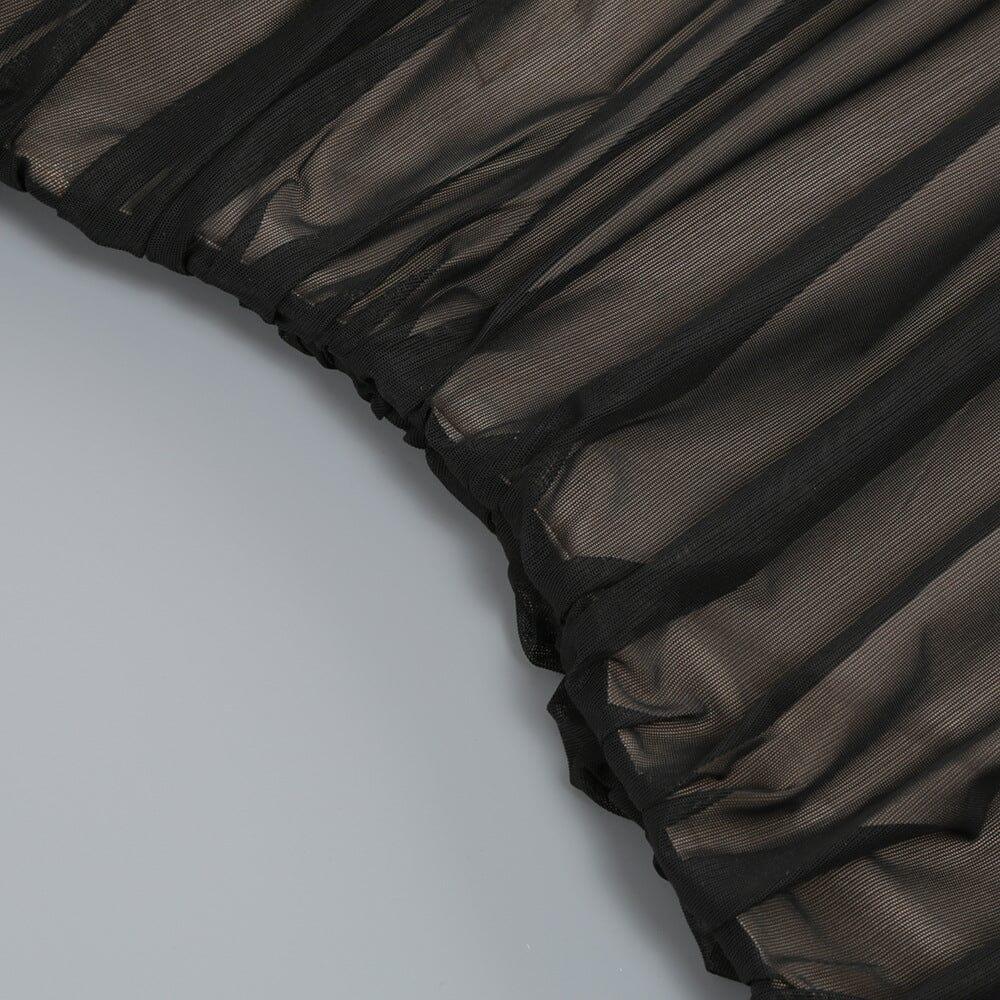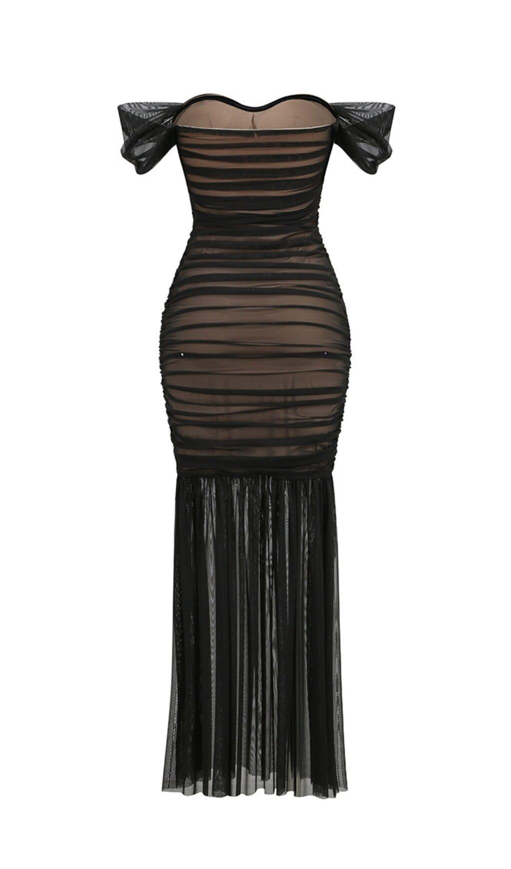 OFF SHOULDER MESH RUCHED MAXI DRESS