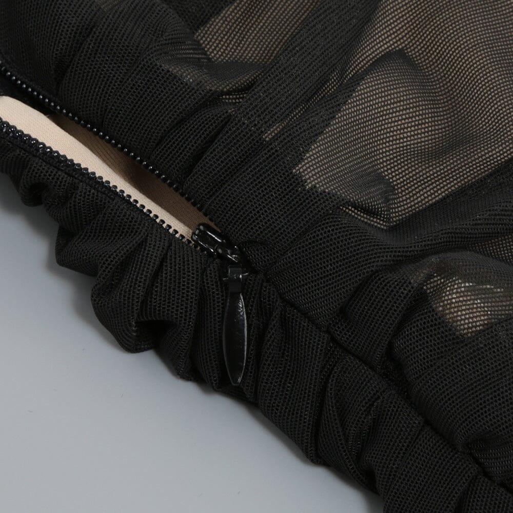 Our Off Shoulder Mesh Ruched Maxi Dress is made from 100% Polyester material, ensuring excellent quality and comfort. The slight stretch factor allows for a flexible fit, making it easy to move and dance the night away. Plus, the gentle machine wash feature makes cleaning a breeze, so you can always keep your dress looking fresh and ready for your next event.