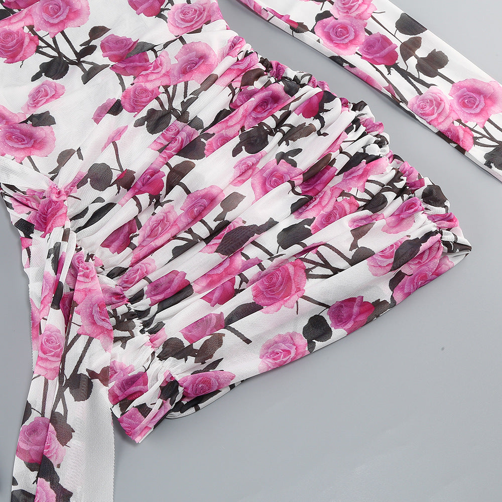 Get ready to turn heads in the BRISA ROSE RUCHED LONG SLEEVE MINI DRESS. This flirty and feminine dress features a ruched design that accentuates your curves and a playful rose pattern for a touch of whimsy. With long sleeves and a mini length, it's perfect for every occasion.
