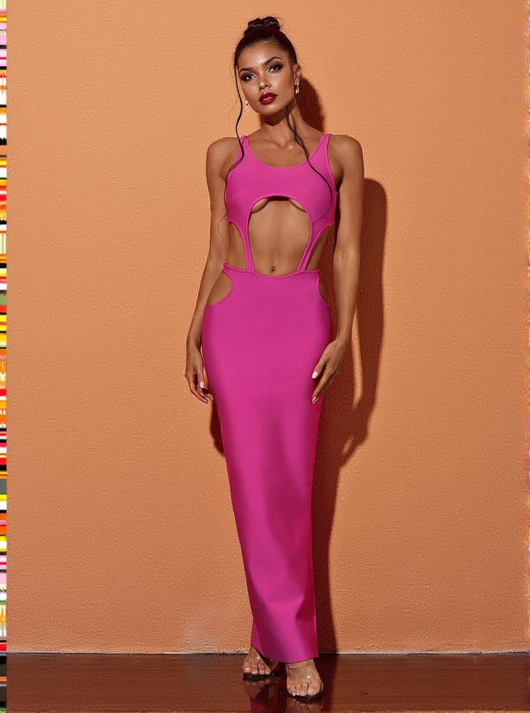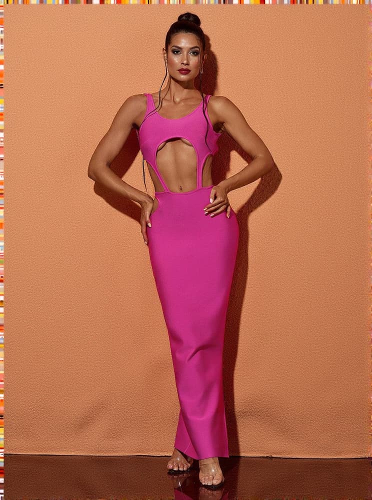 This Bronwyn Long Sleeve Cutout Split Maxi Dress is perfect for any occasion. The fabric is bandage material for a flattering silhouette. It features stylish mesh long sleeves and cut-out accents for an eye-catching look, as well as a thigh-high split for enhanced breathability and comfort. For an elegant look, the dress is full length.