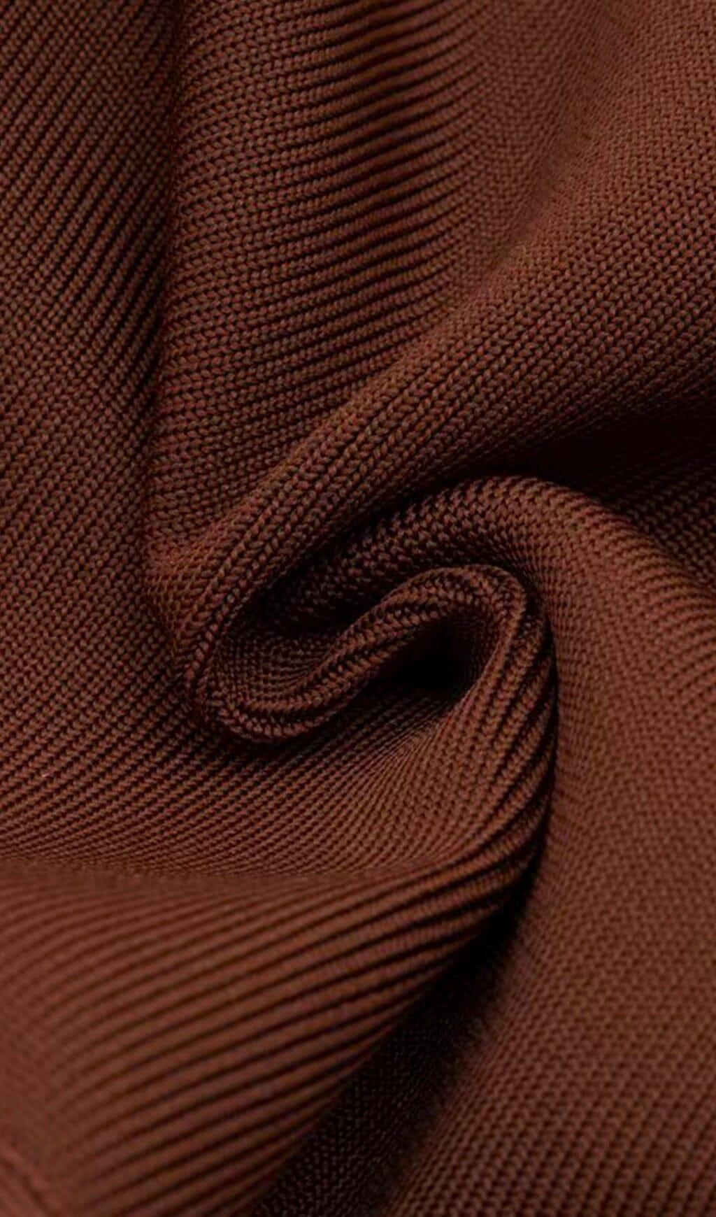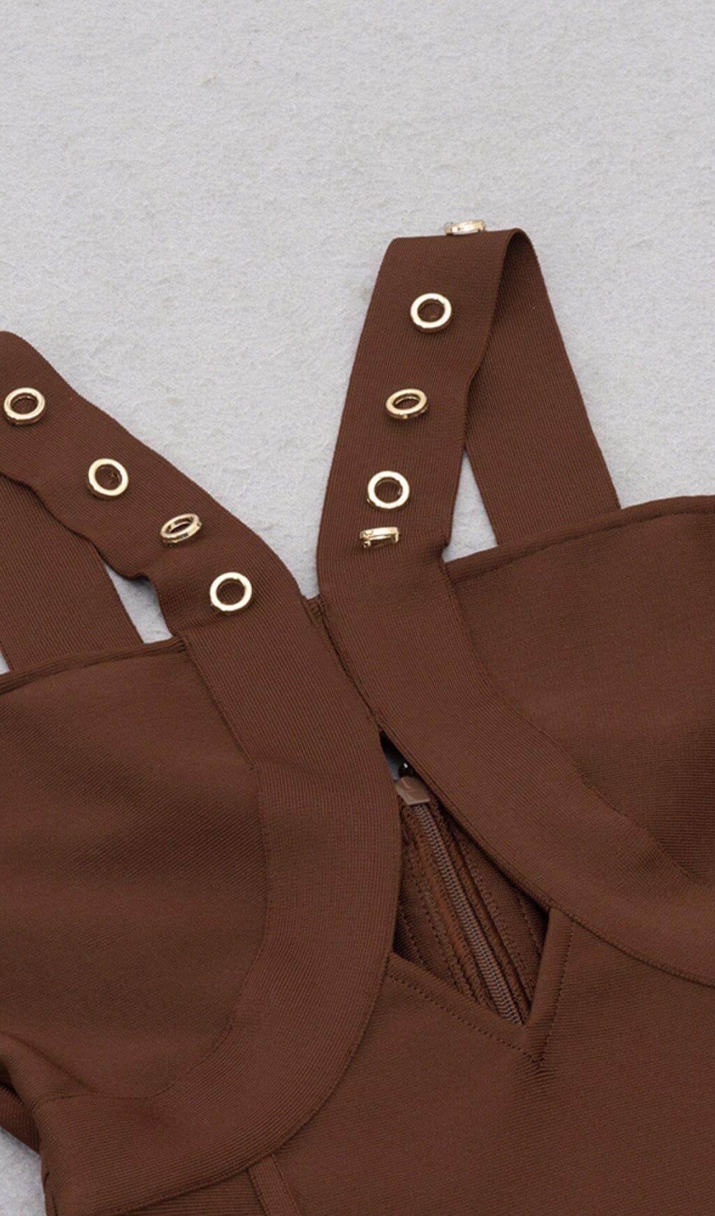 BROWN SLEEVELESS CHEST HOLLOW FRINGE HEM SKINNY MAXI DRESS