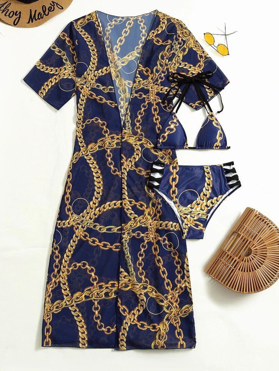 Get ready to turn heads and make a splash with the Bryony Bikini Three Piece Set in Blue. Order yours today and be the envy of every beach or poolside gathering!