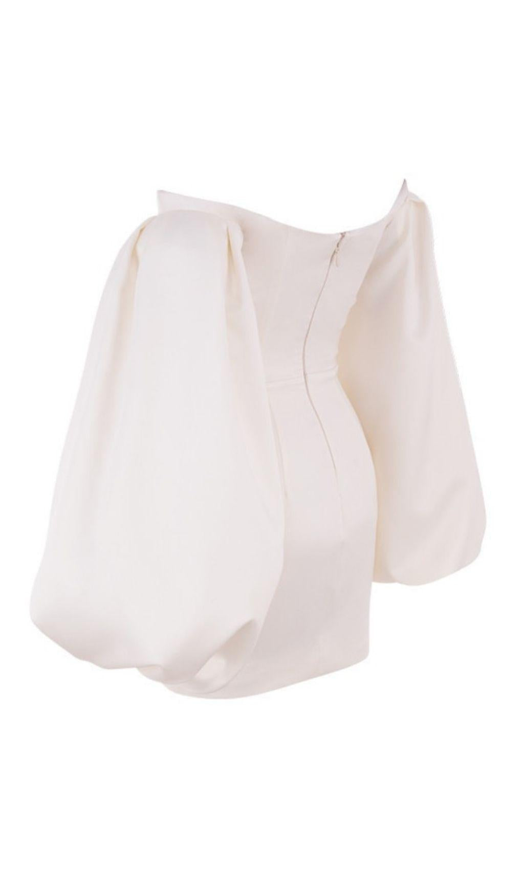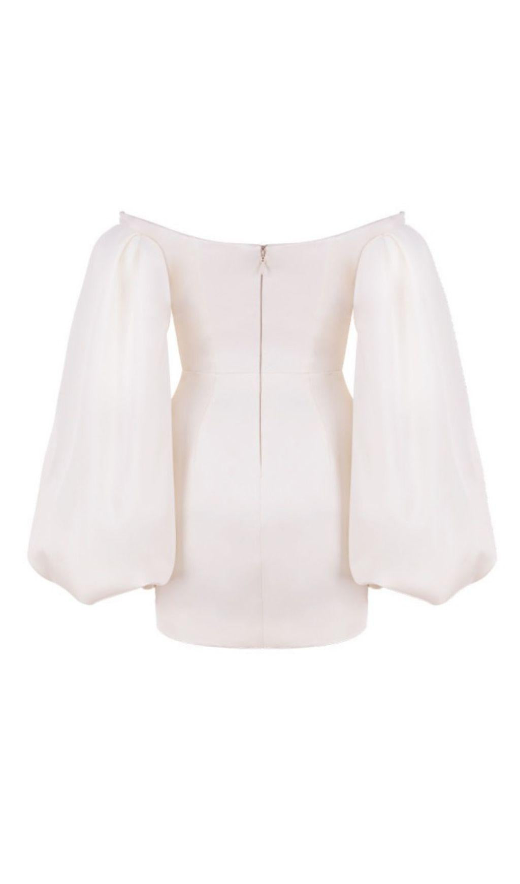 BUBBLE LONG SLEEVE MINI DRESS IN IVORY