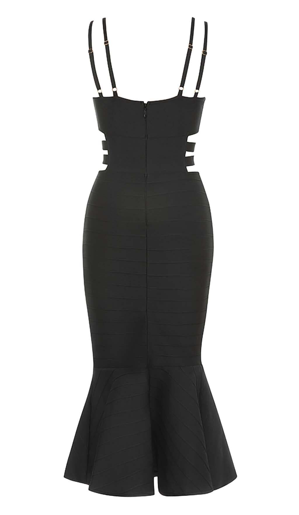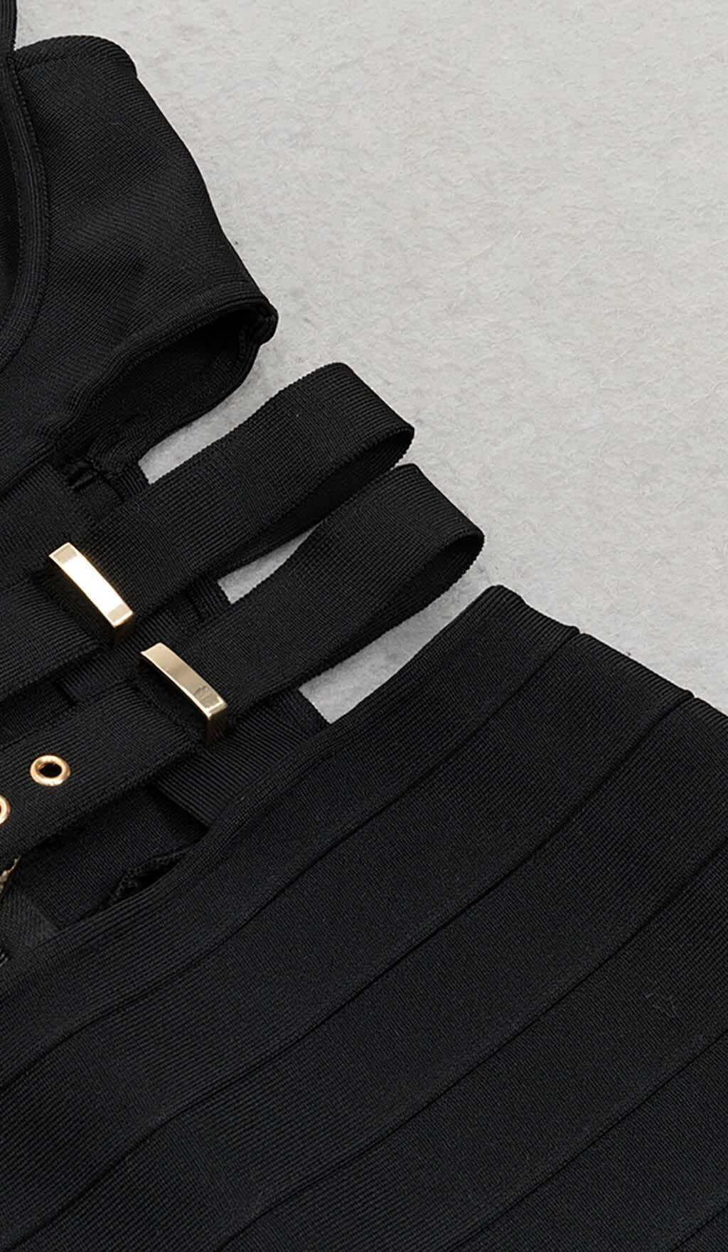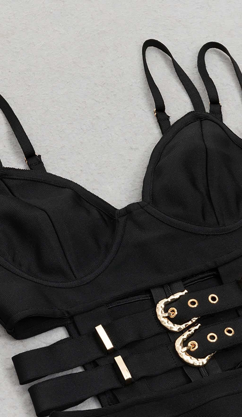 BUCKLE BANDAGE MIDI DRESS IN BLACK