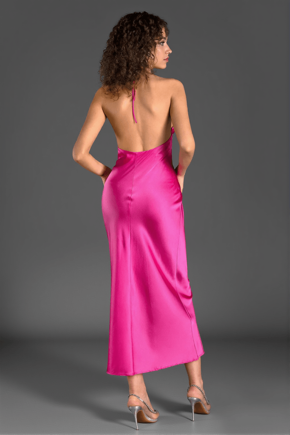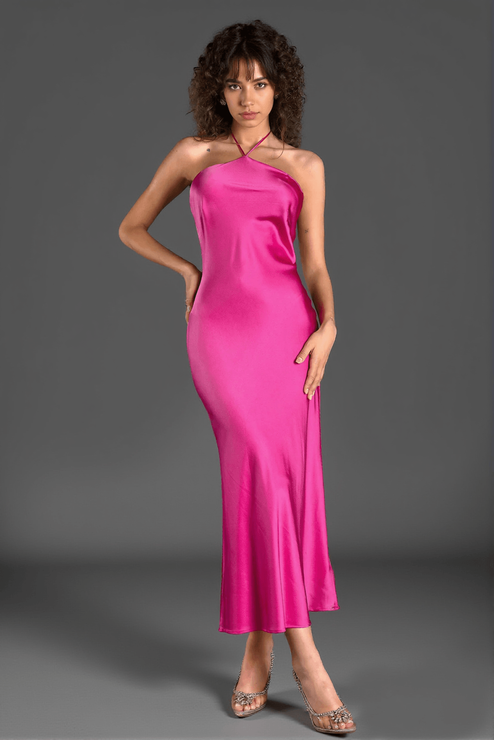 The Burallis Halter Silk Dress is your go-to choice for garden parties, beach weddings, and stylish evenings out. Its elegant yet versatile design ensures you'll turn heads wherever you go.