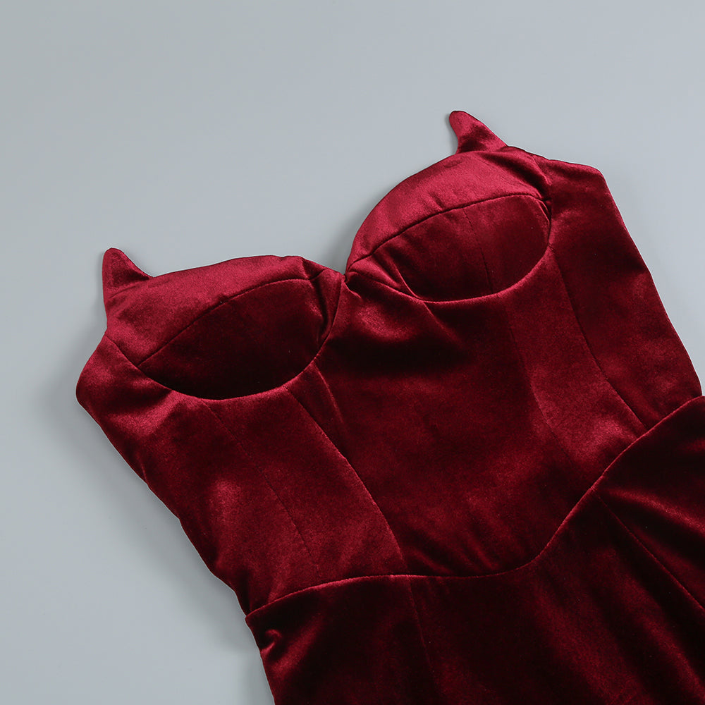 The rich burgundy color, elegant strapless design, and soft velvet fabric will make you feel confident and stylish all night long. Perfect for any special occasion, this maxi dress is a must-have in your wardrobe.