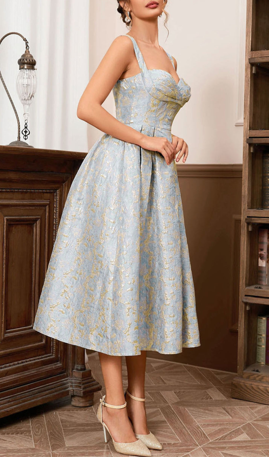 AVON A LINE MIDI DRESS GOLD AQUA