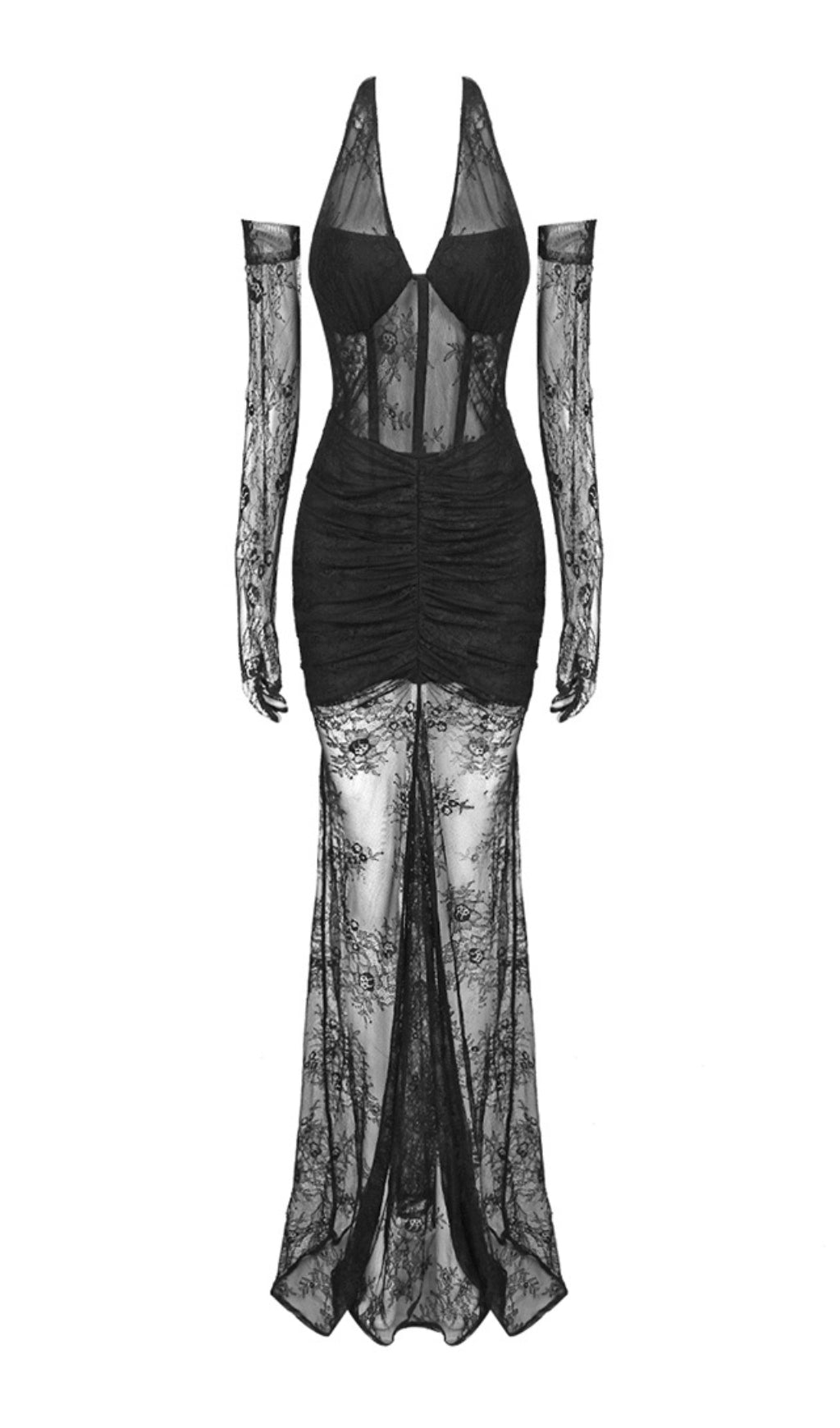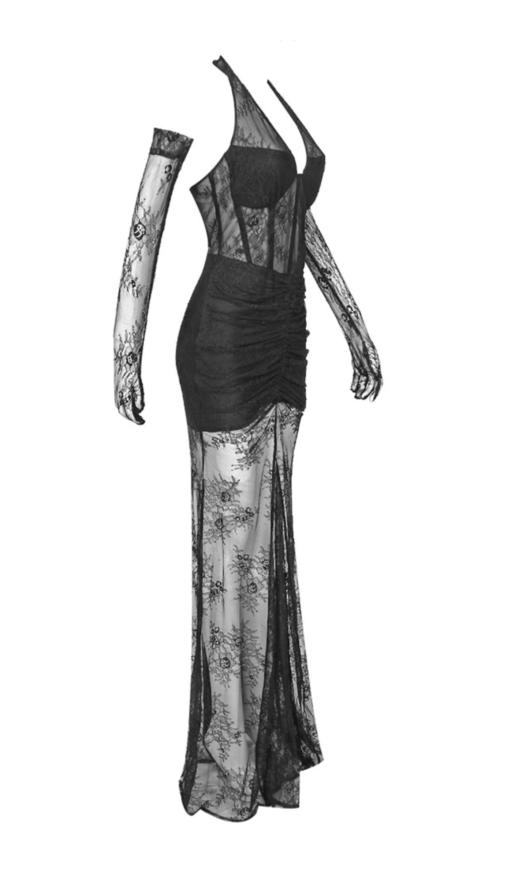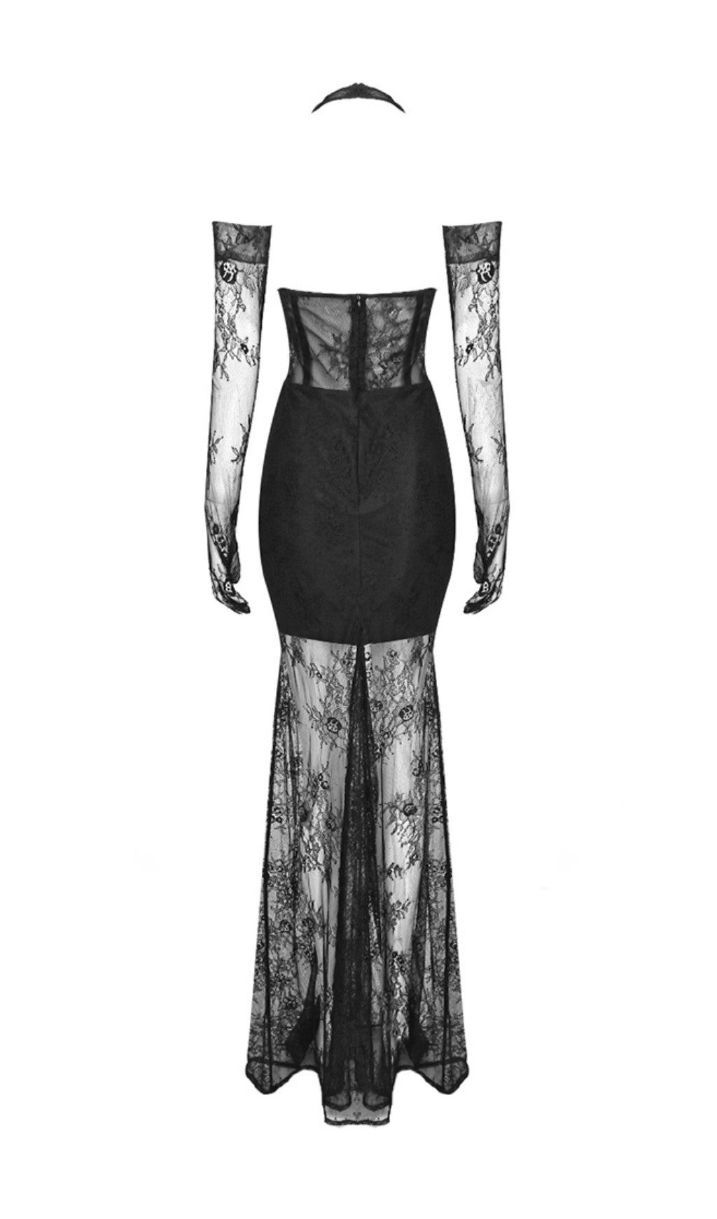 AOIFE BLACK BUSTIER FLORAL LACE GOWN