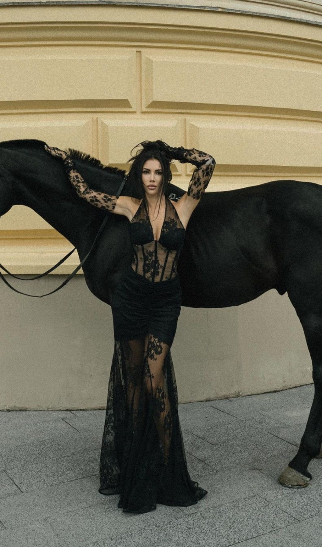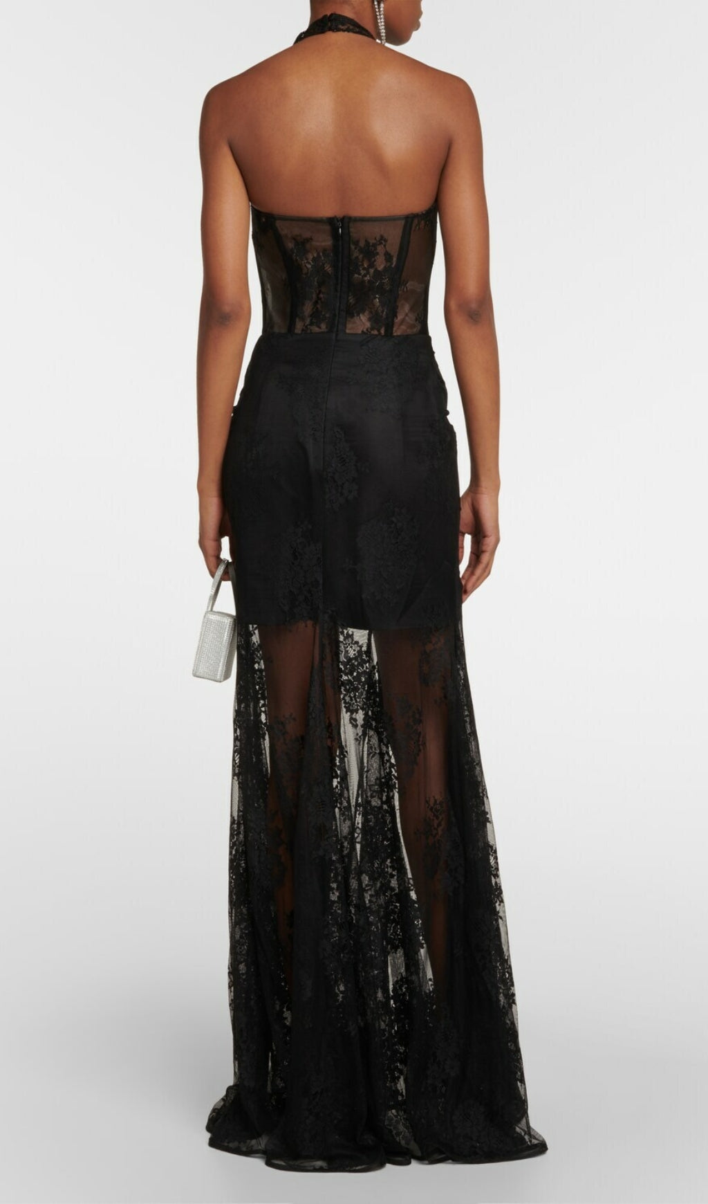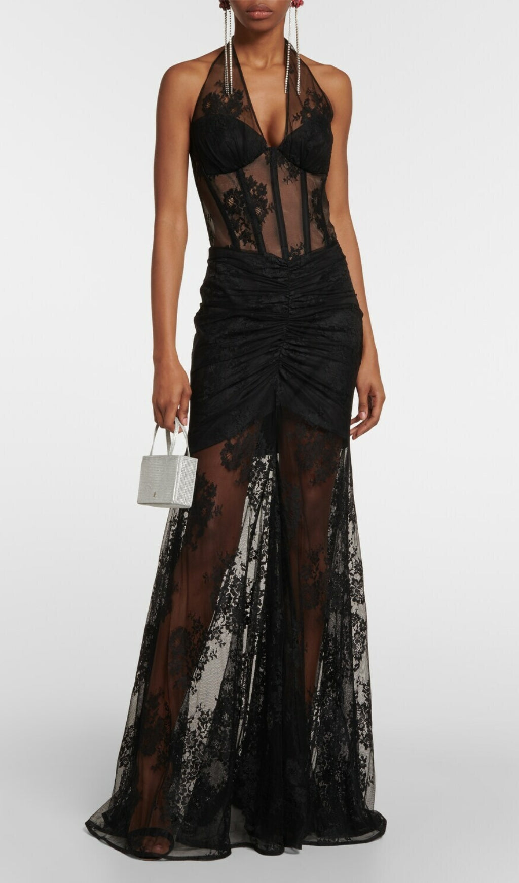 AOIFE BLACK BUSTIER FLORAL LACE GOWN