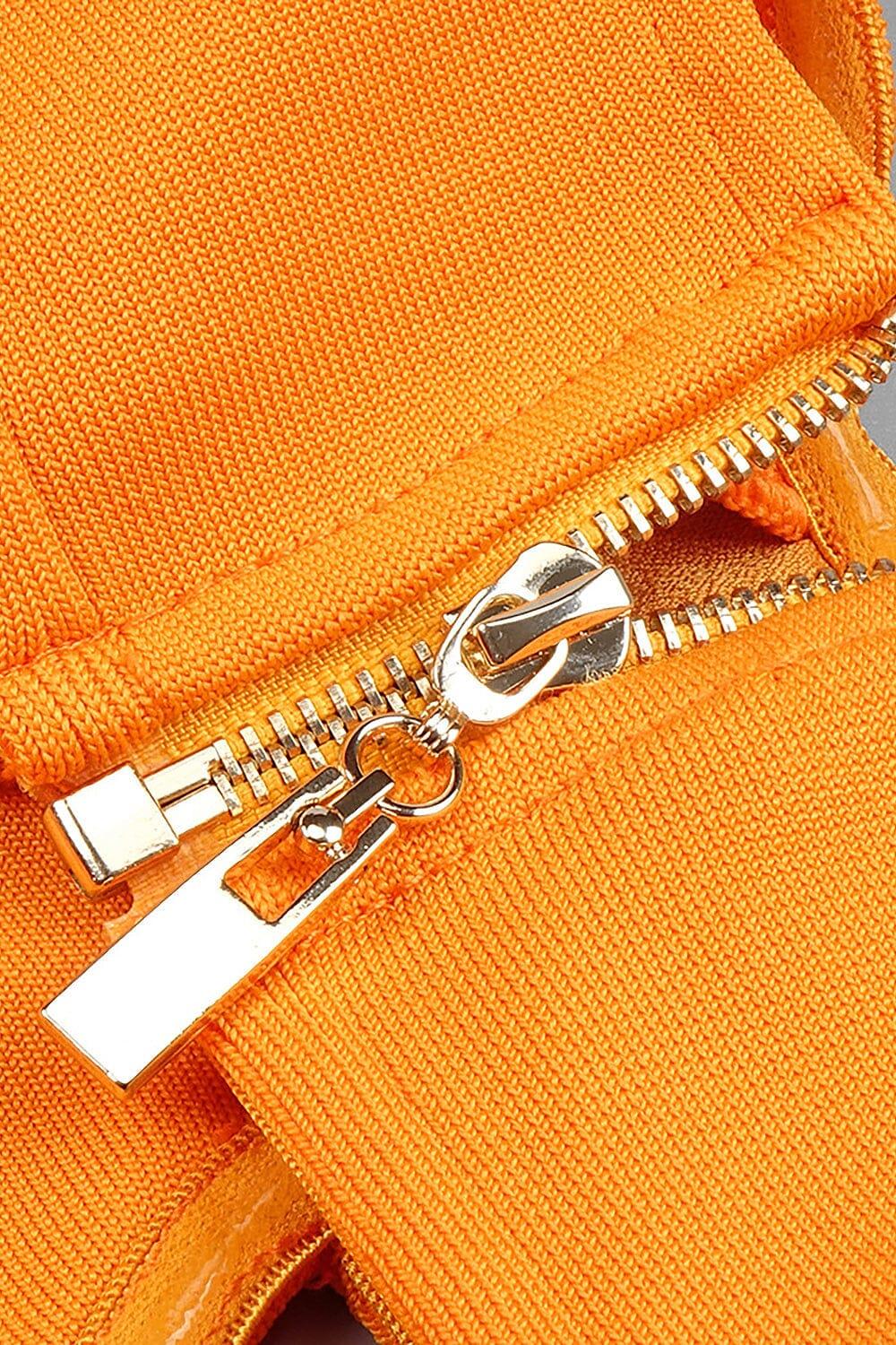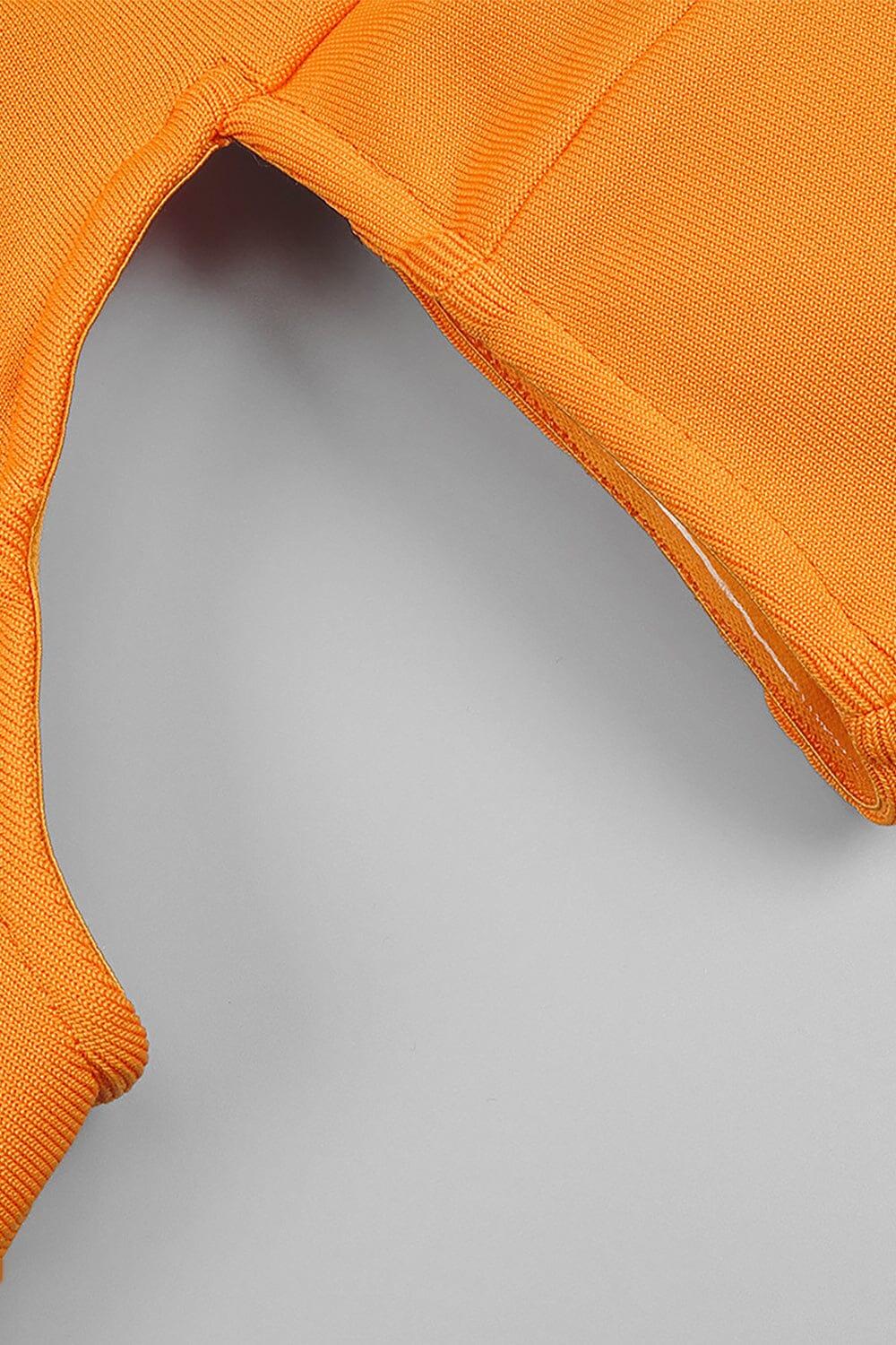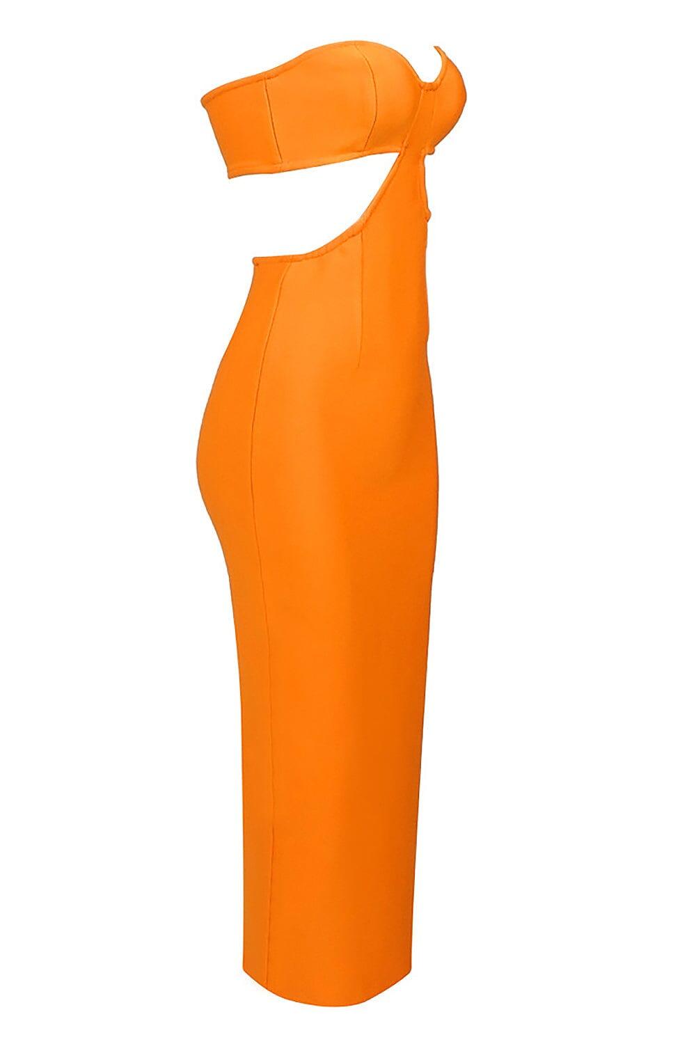 BUSTIER NECKLINE CUT OUT BANDAGE DRESS IN ORANGE