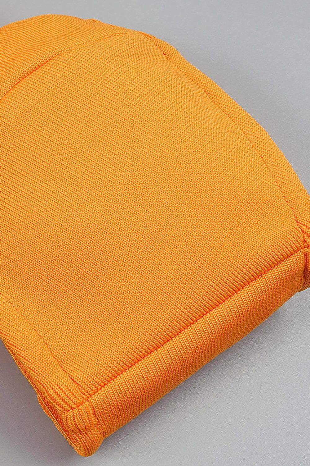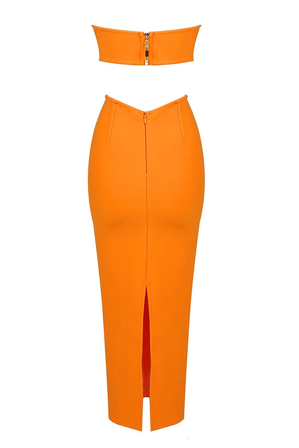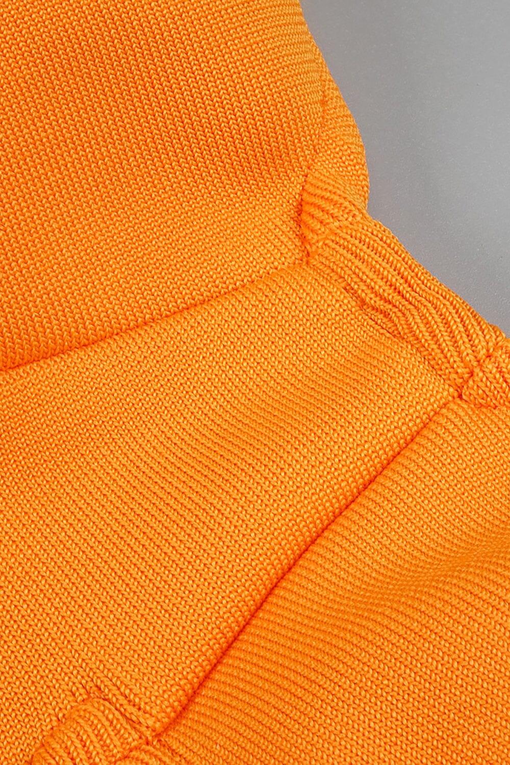 BUSTIER NECKLINE CUT OUT BANDAGE DRESS IN ORANGE