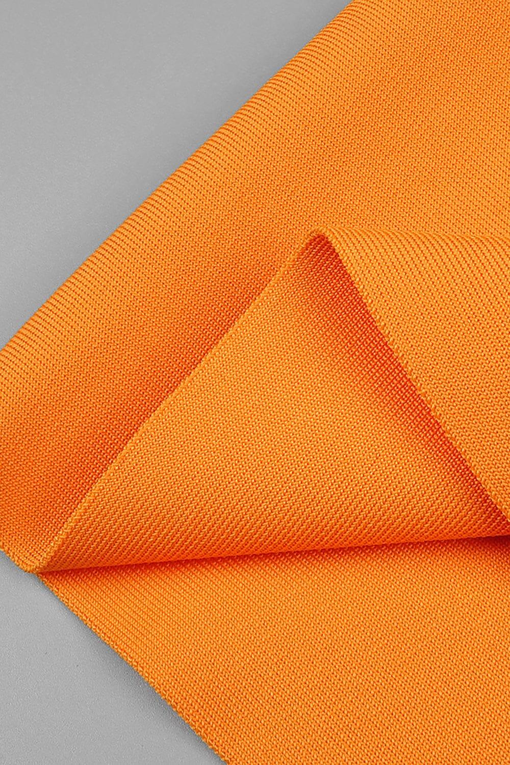 The BUSTIER NECKLINE CUT OUT BANDAGE DRESS IN ORANGE is a stunning dress that combines elegance and style. It is perfect for various occasions such as weddings, cocktail parties, festive events, or a girl's night out. Made with high-quality bandage material (Rayon, Nylon, Spandex), this dress offers a comfortable fit while accentuating your curves.