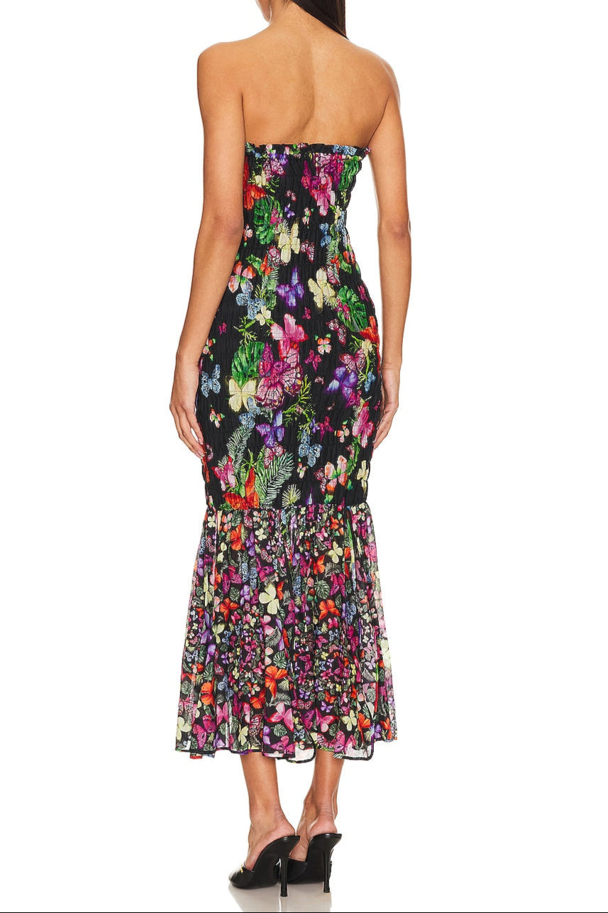 butterfly print fishtail wrap maxi dress