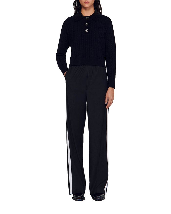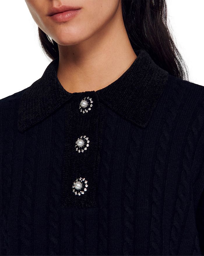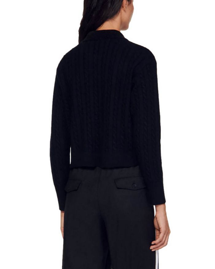 Made with intricate cable knit, this elegant piece is perfect for any occasion. The unique polo neck adds a touch of sophistication while keeping you warm and stylish. Elevate your wardrobe now with this must-have item.