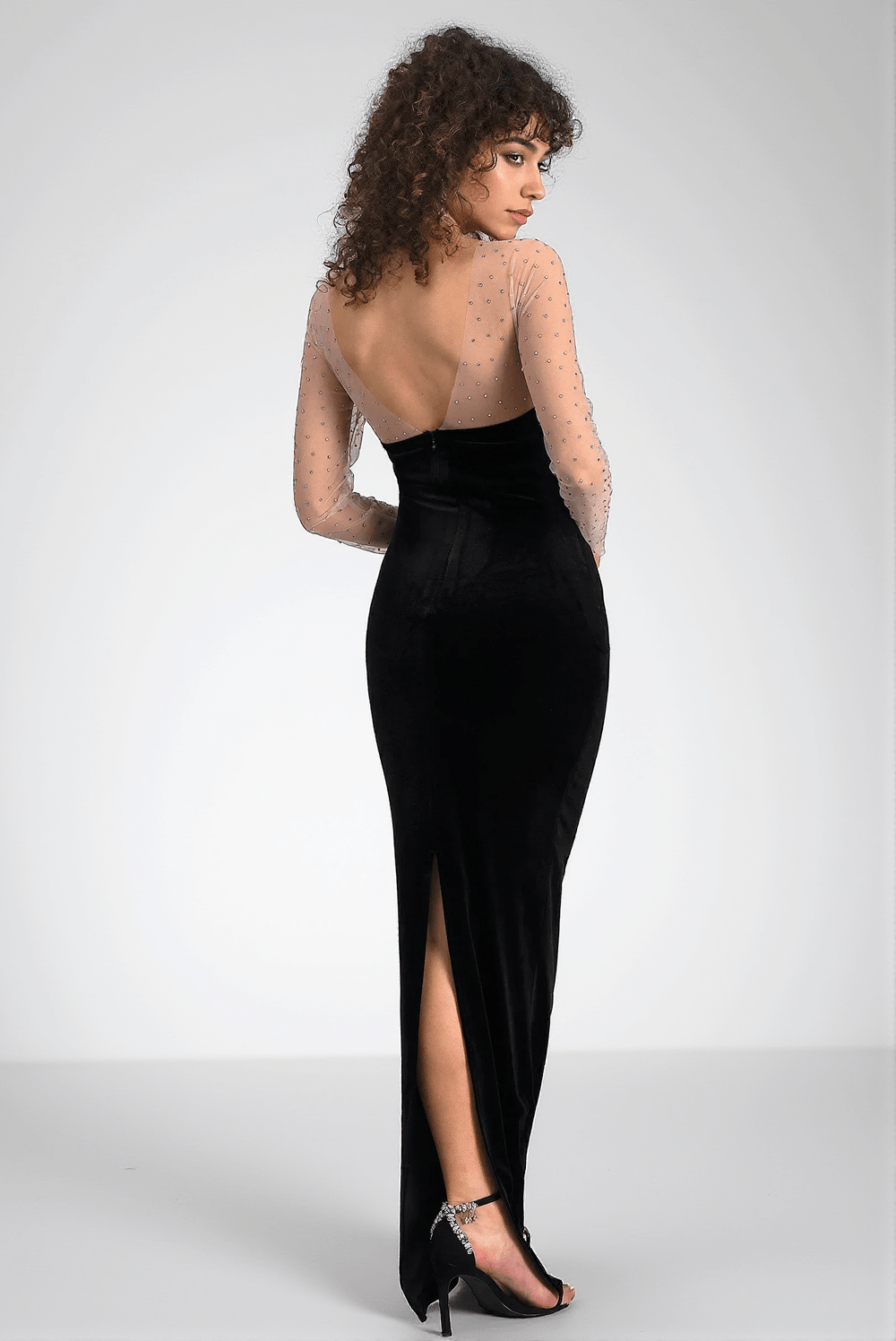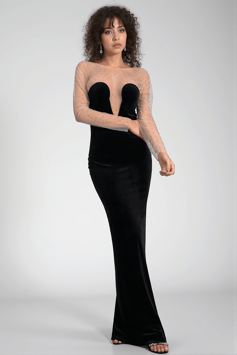 Whether it's an exclusive invitation or a night of celebration, make your moment memorable with the Calatou Mesh Velvet Maxi Dress. Available now for you to make a statement.