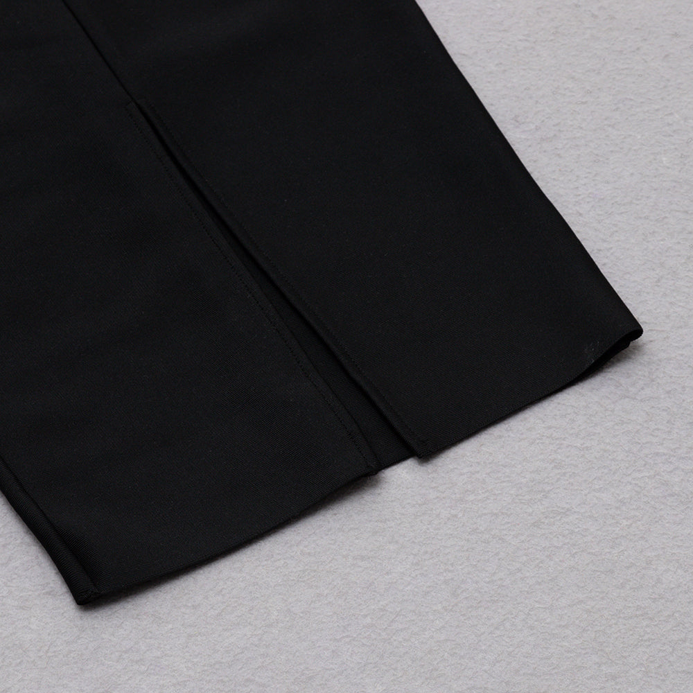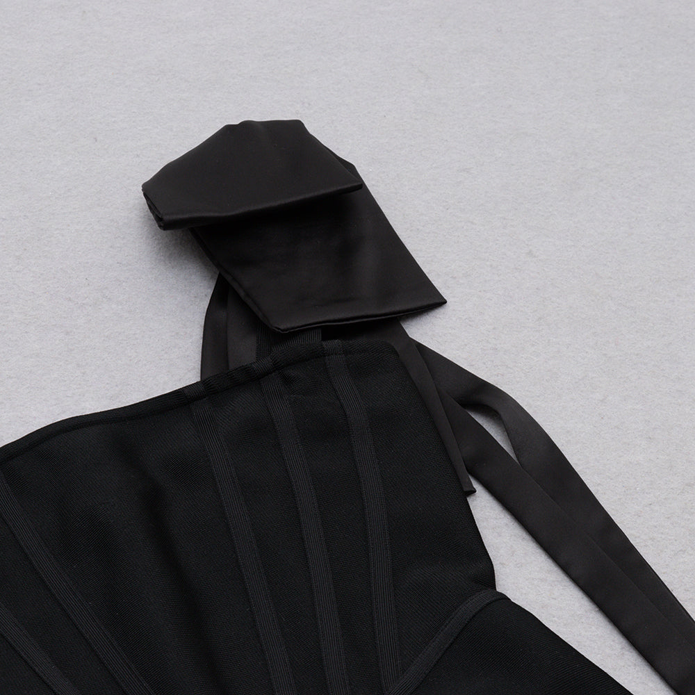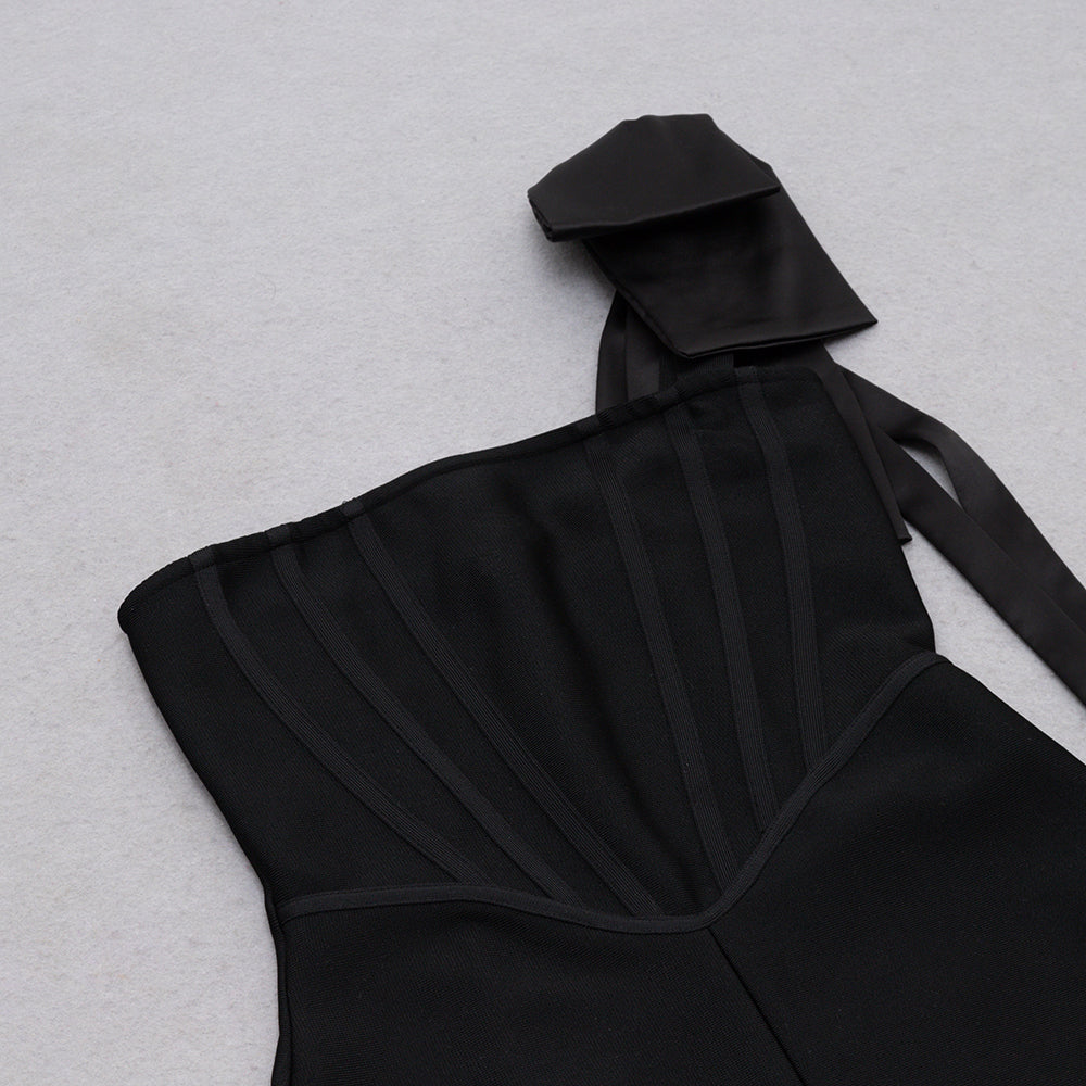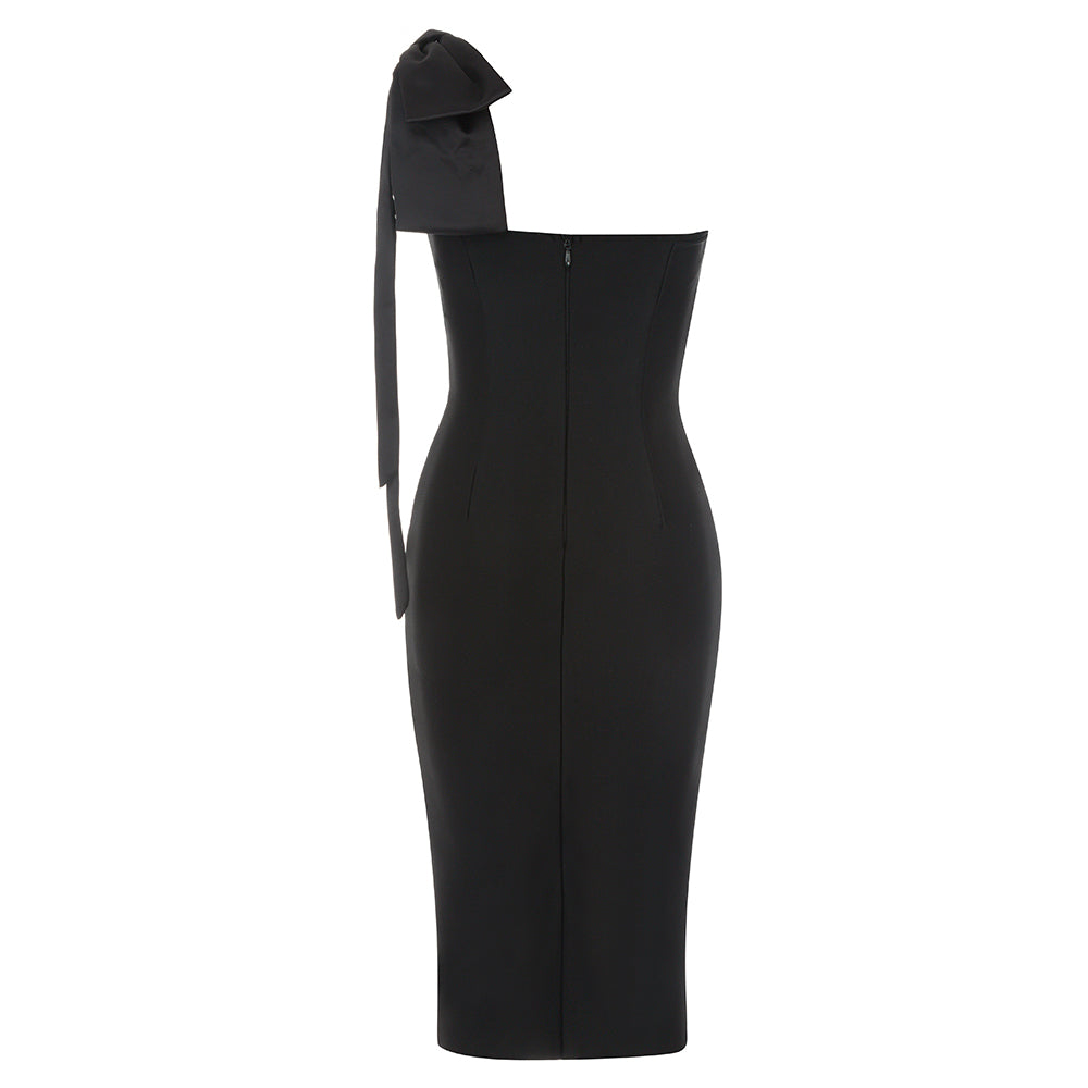 CALISTA BLACK ONE BOW SHOULDER SPLIT BANDAGE MIDI DRESS