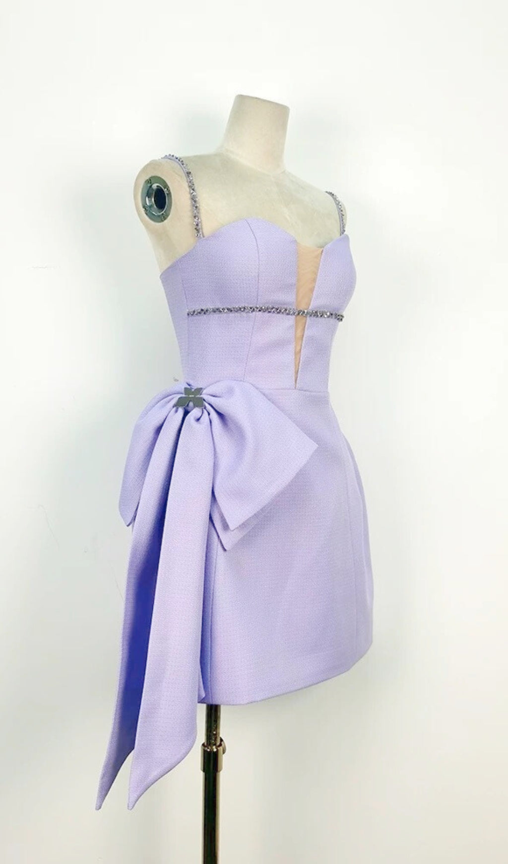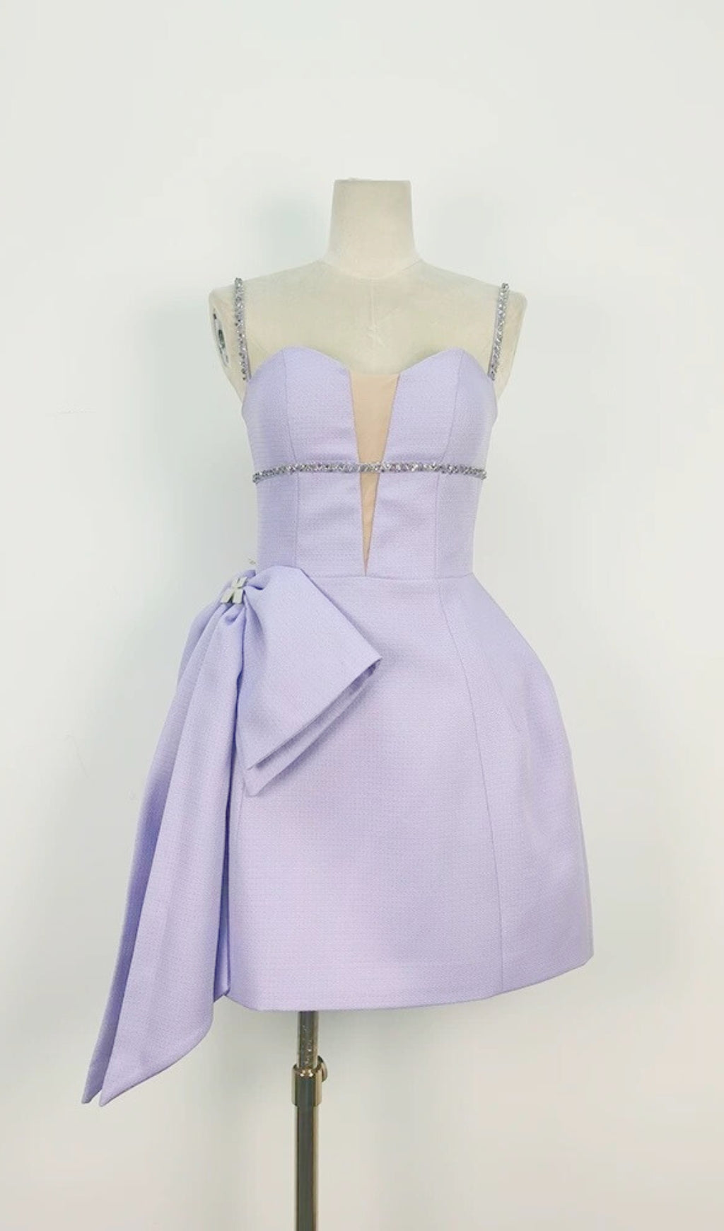 CANDANCE LILAC RHINESTONES SPAGHETTI STRAP MINI DRESS