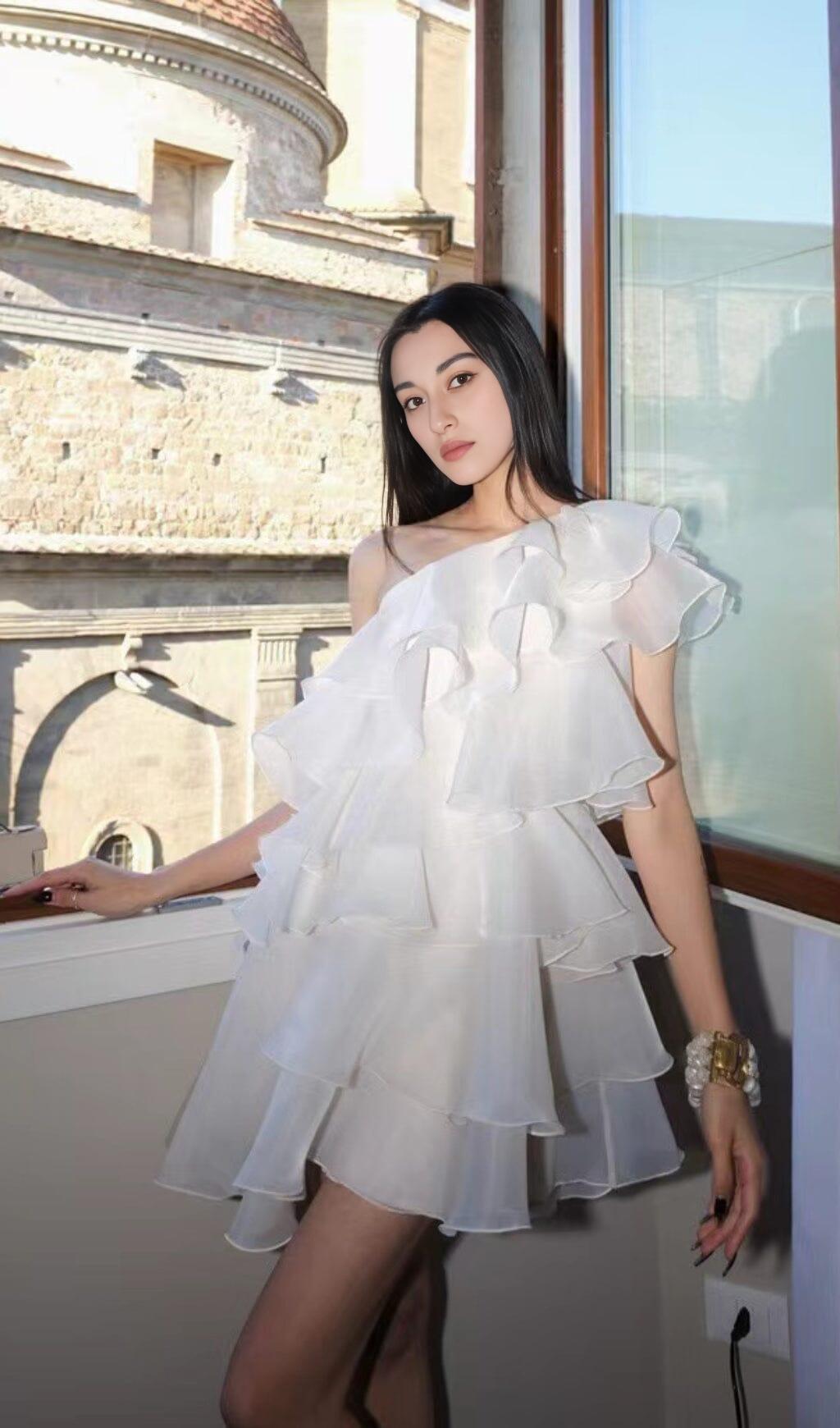 Look chic and feminine in this one-shoulder tiered mini dress. Crafted from cotton and spandex, it features a flattering cap-sleeve silhouette that is sure to make a statement. Its mini length and clean lines create a timelessly stylish look.