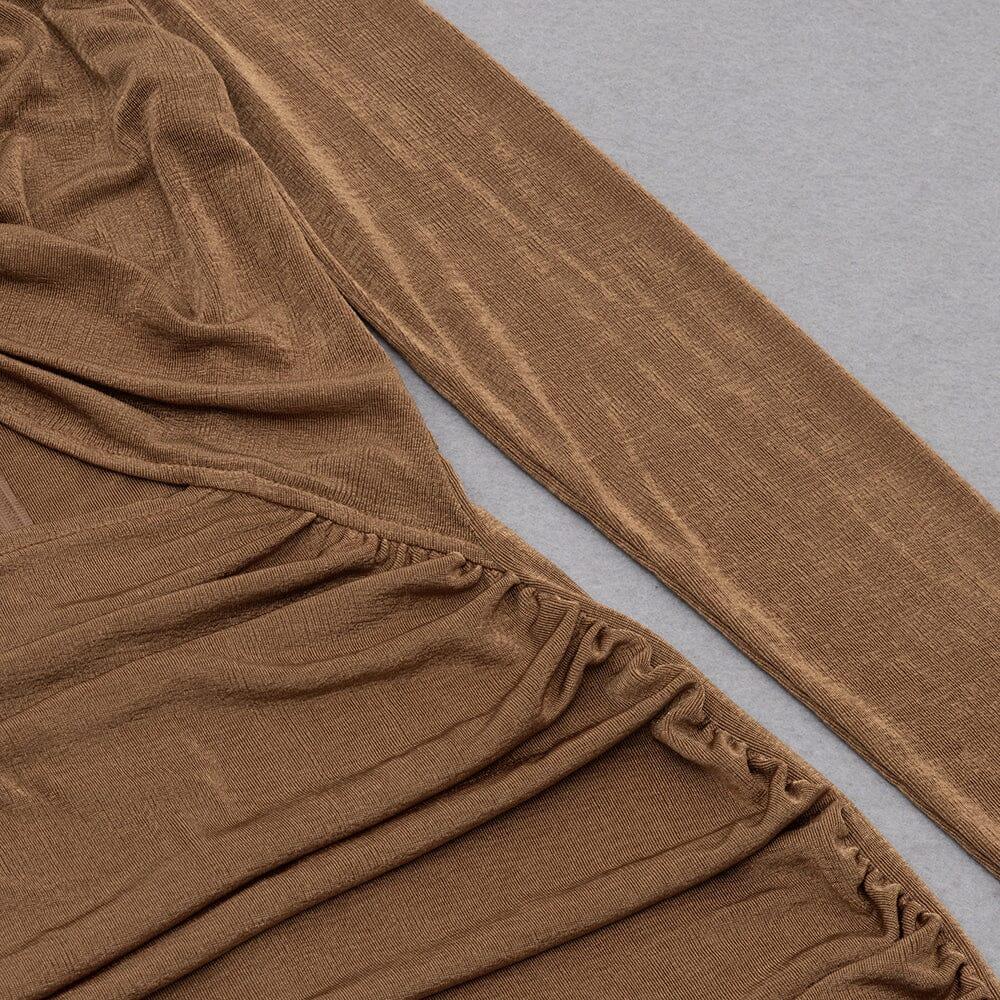 Caramel Turtleneck Waist Hollow Pleated Dress